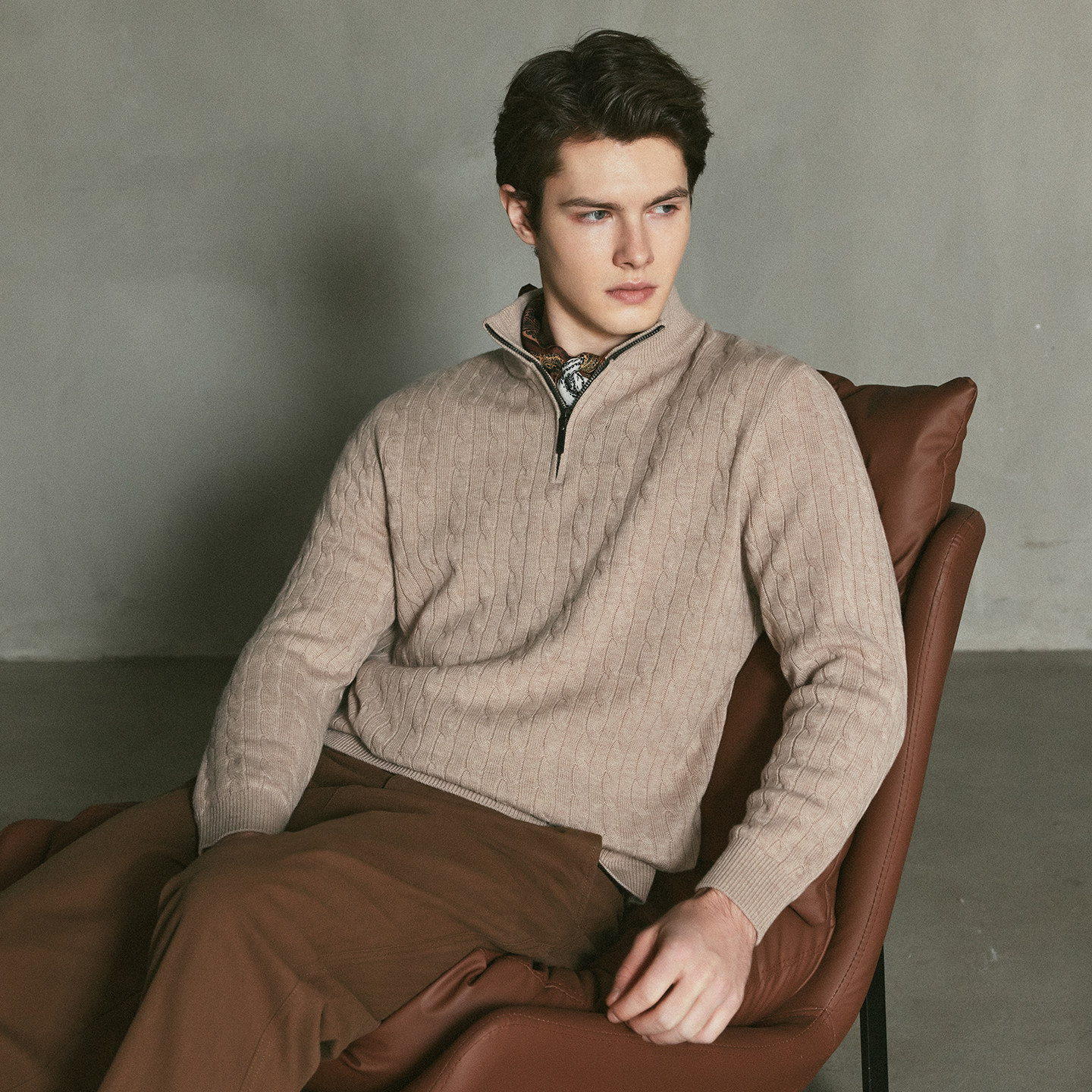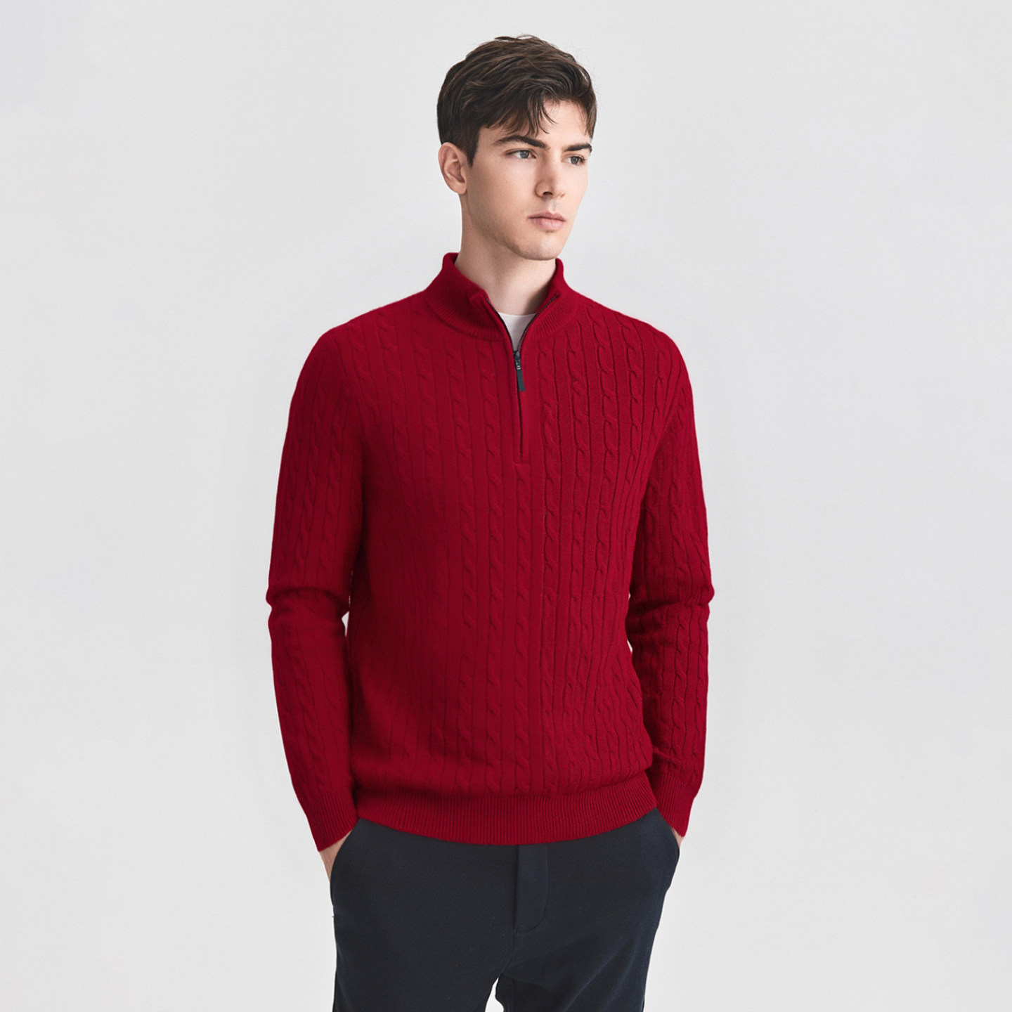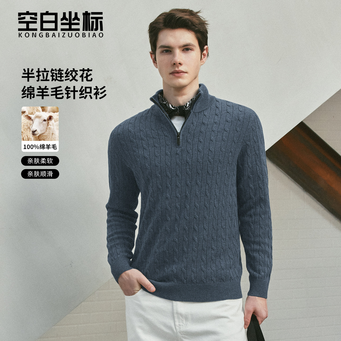 📚 空白坐标【100绵羊毛】半拉链立领绞花针织衫男士冬季保暖羊毛衫