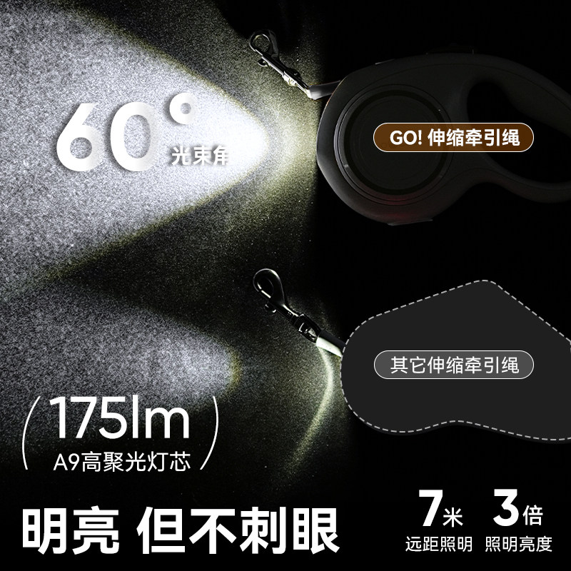 📚 蔚刻pro狗狗自动伸缩牵引绳防爆冲中小大型犬可调节灯光带拾便器