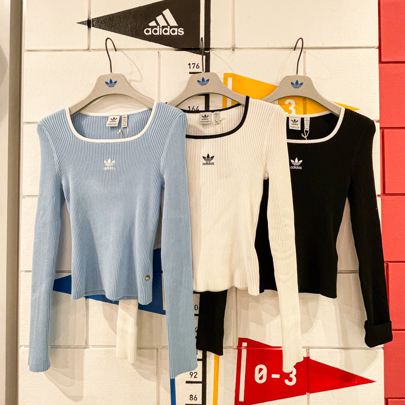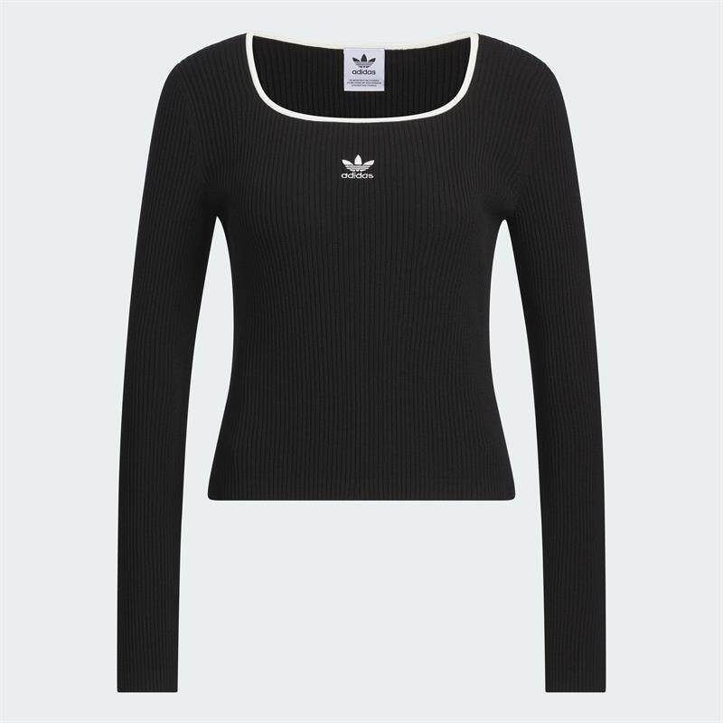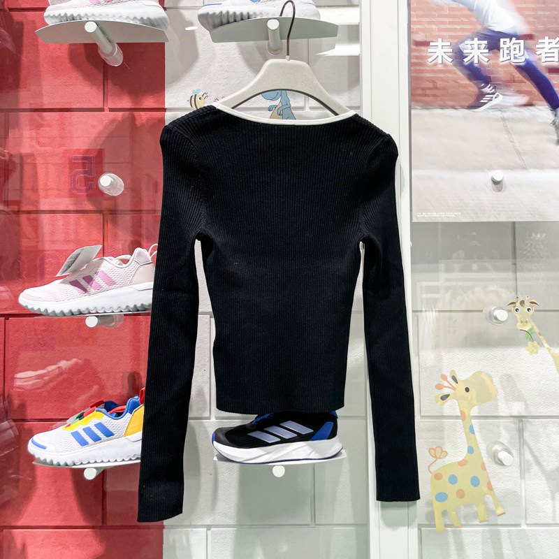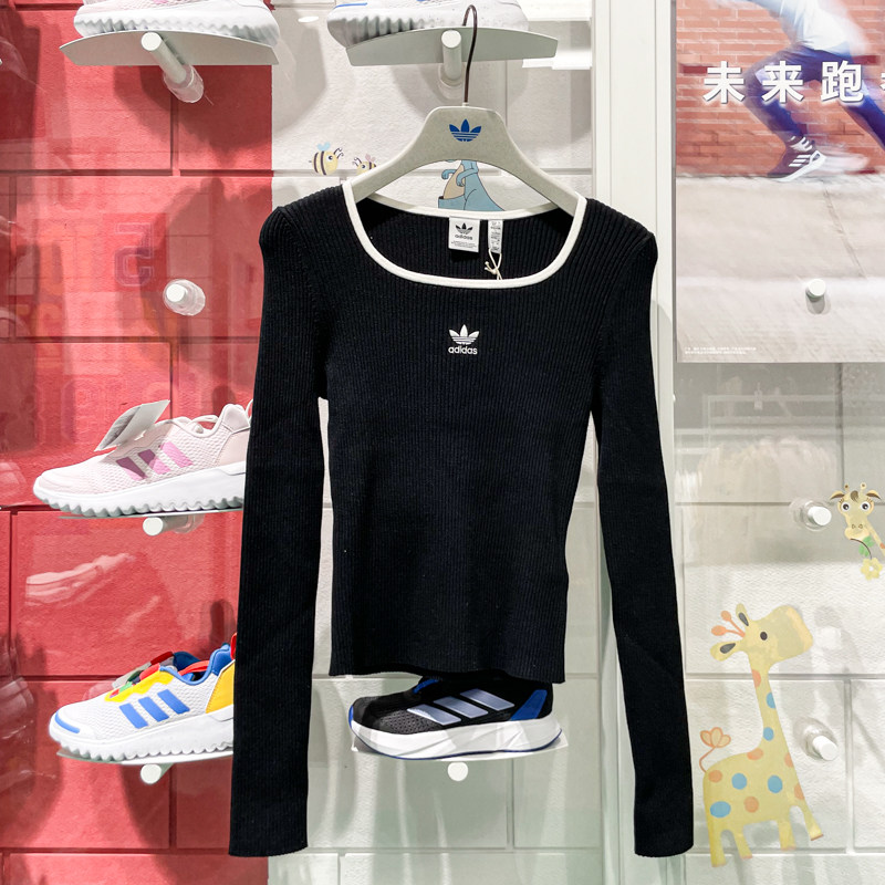 📚 阿迪达斯三叶草女装2024冬季款紧身收腰方领长袖针织套头衫JM8052