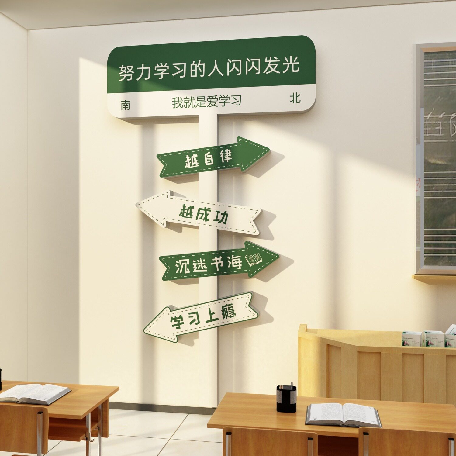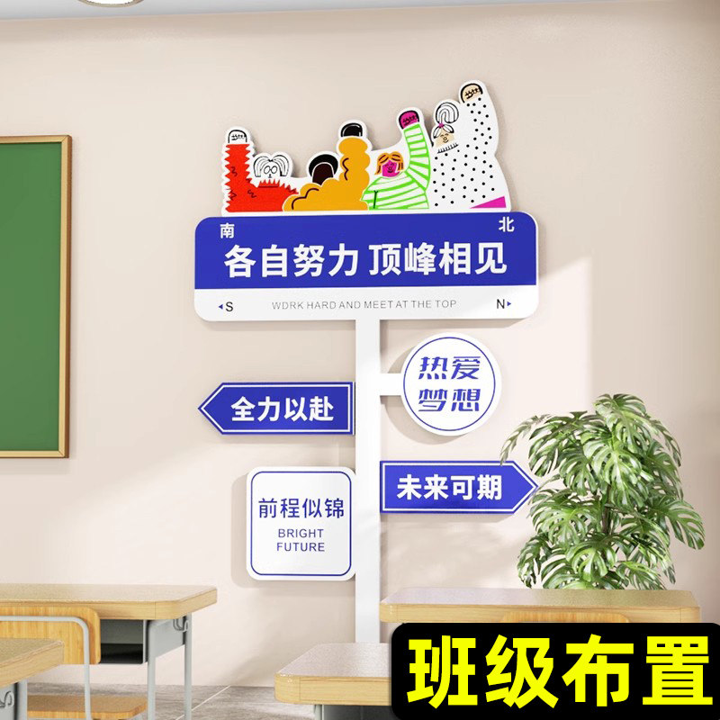 📚 班级布置教室装饰初中高三学校开课励志标语路牌氛围背景文化墙贴