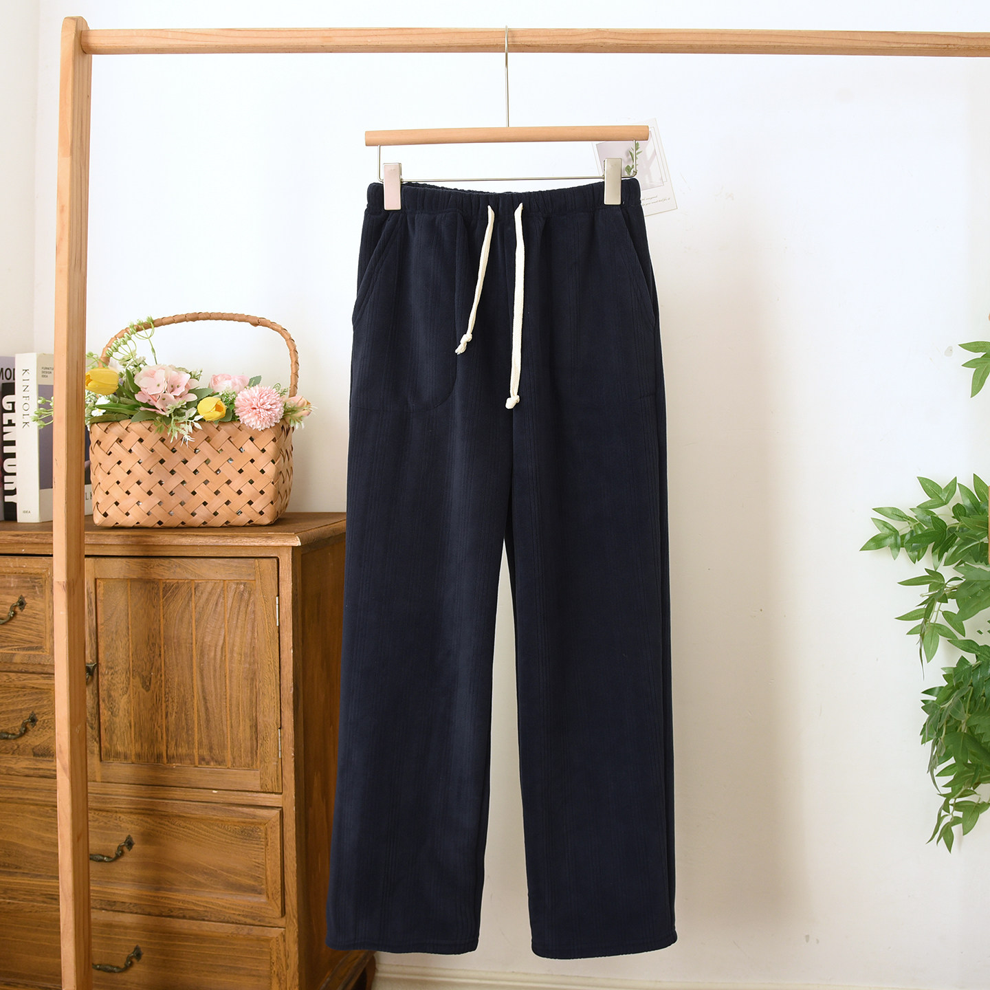 📚 秋冬季睡裤女加绒法兰绒直筒长裤宽松保暖珊瑚绒休闲裤大码可外穿