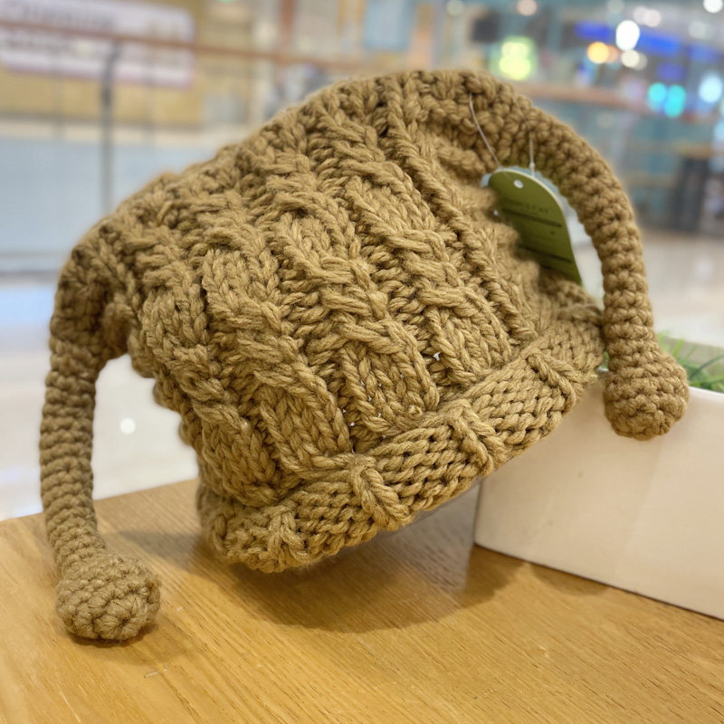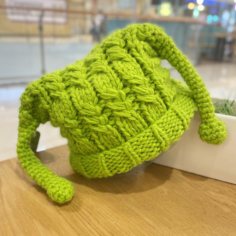 📚 可爱搞怪毛线帽子女童亲子防寒保暖恶魔长辫子绿色针织套头帽潮萌