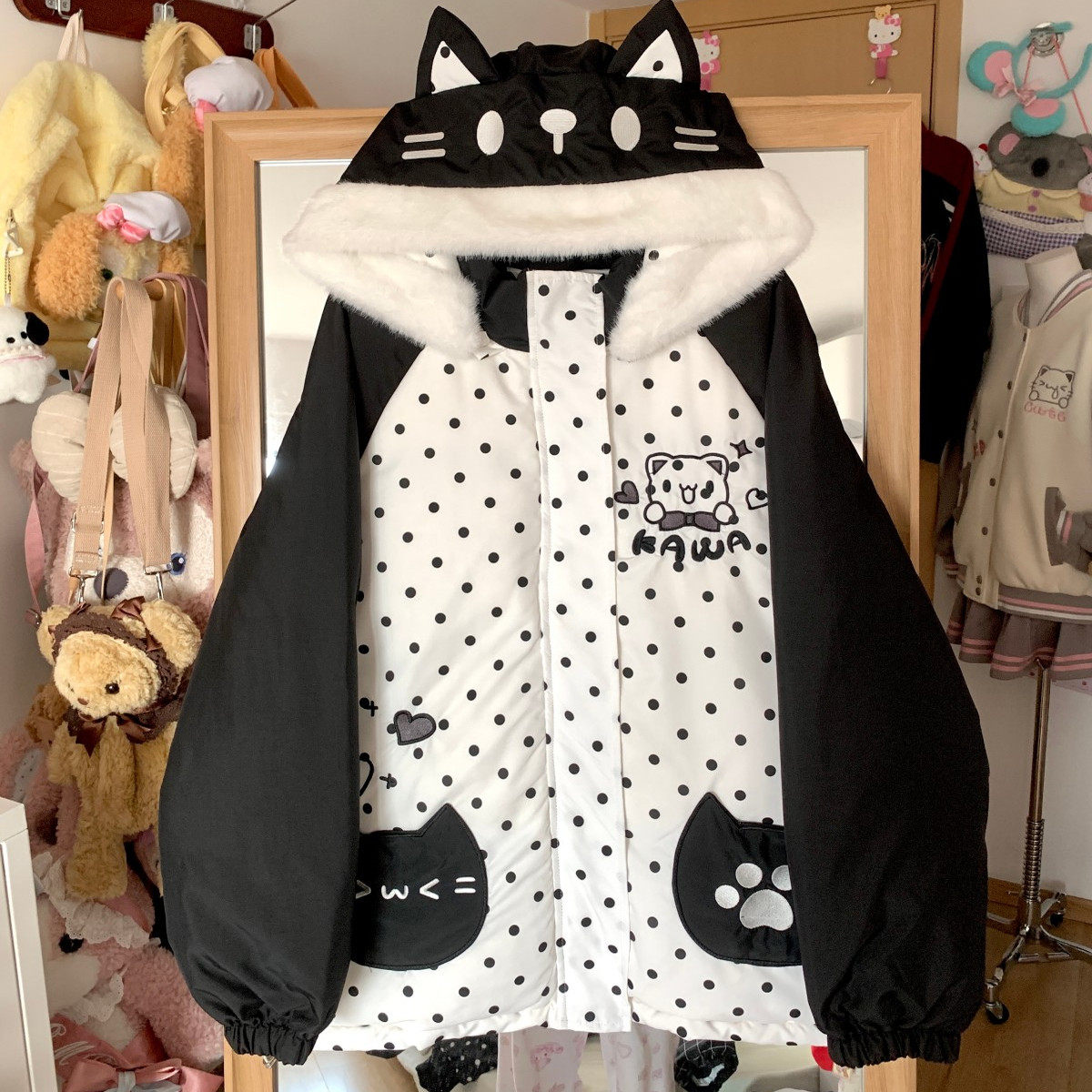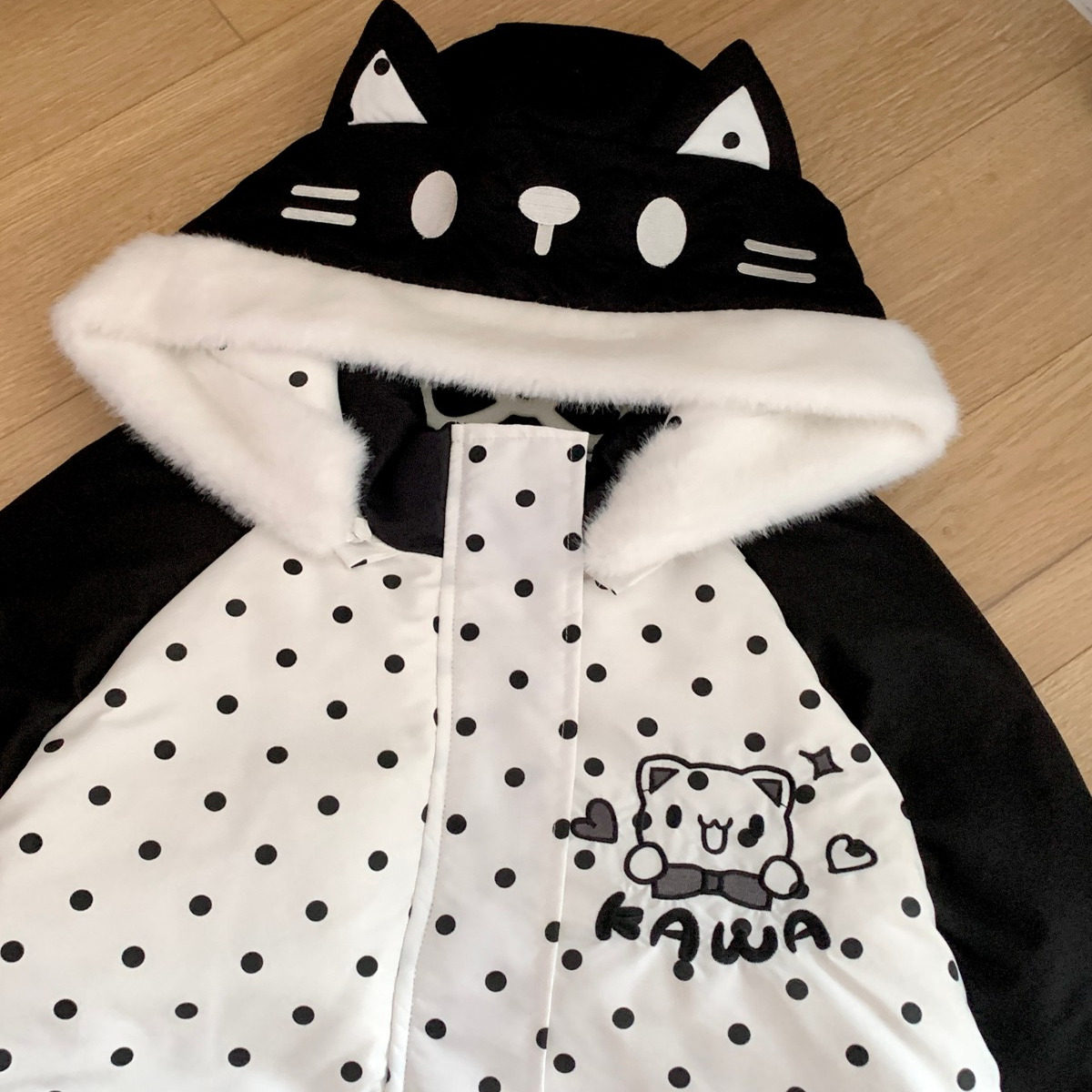 📚 Blurredbear原创冬季宅系小猫波点羽绒服女白鸭绒棉服加厚外套女