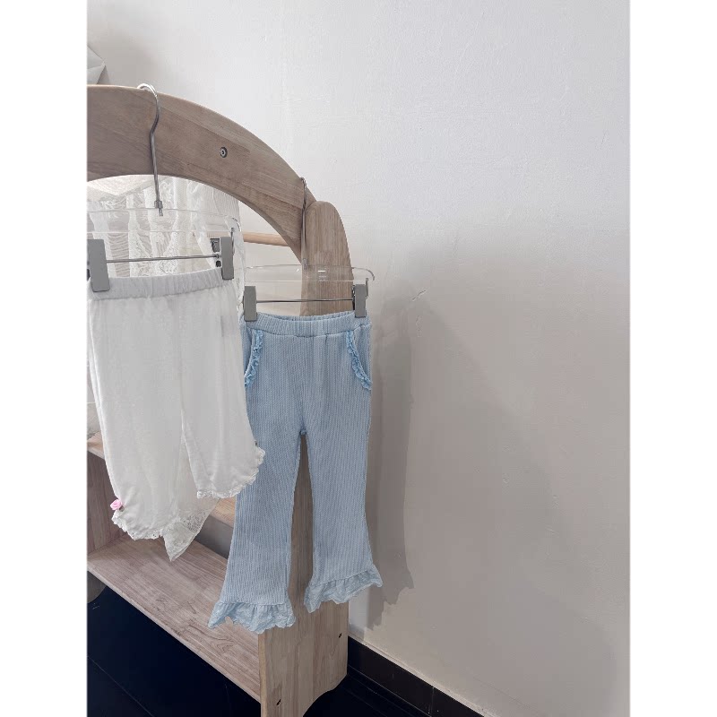 📚 自制偏大很多相当于100-140女童春夏软糯大弹力蓝色针织微喇长裤