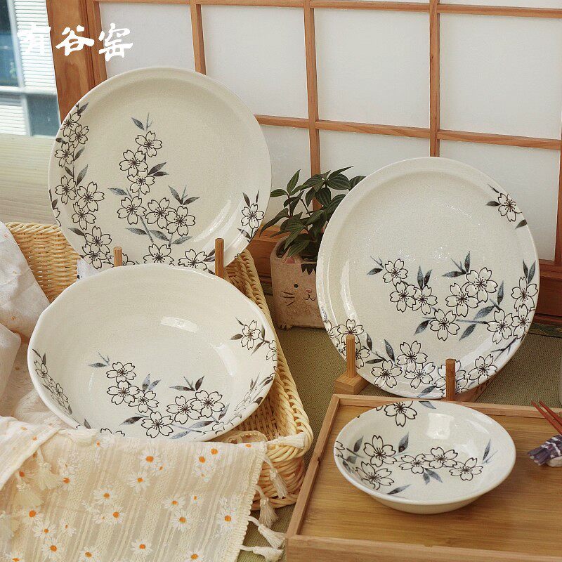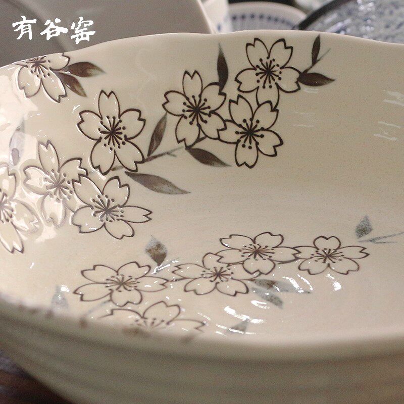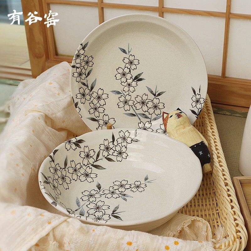 📚 有谷窑日本进口河津樱釉下彩陶瓷餐具饭碗深盘面碗日式餐具礼盒装