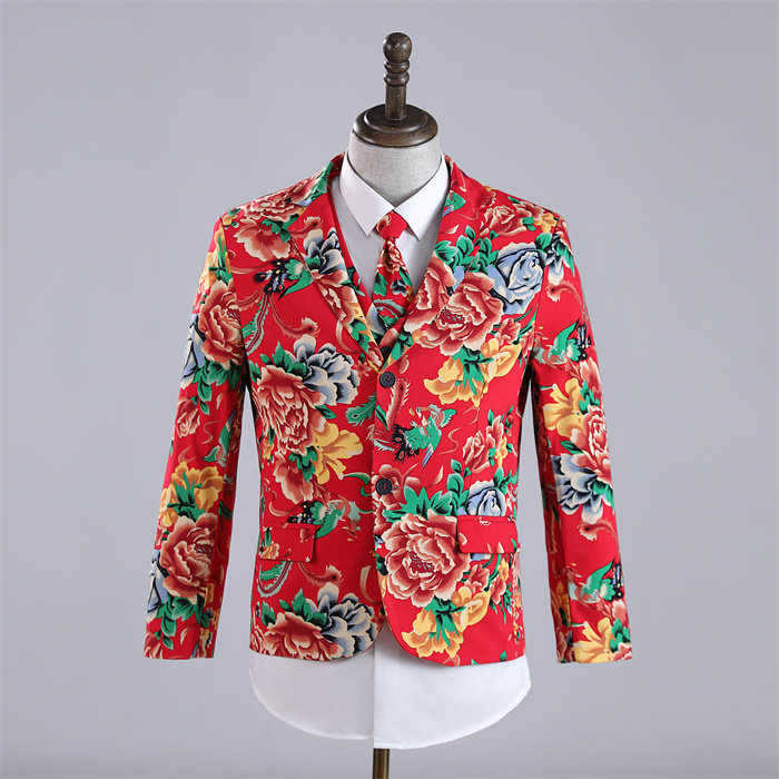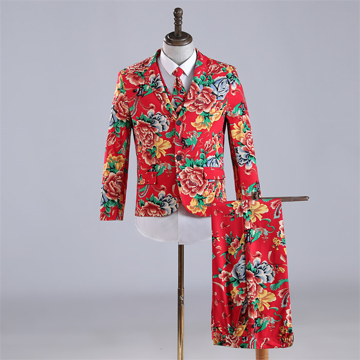 📚 春夏西服演唱会薛之谦同款东北大花西装四件套男歌手舞台表演礼服