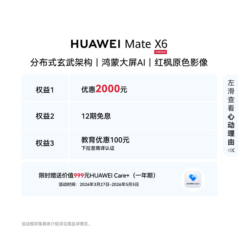 07¥ HU293 Wi755iAaV83¥ https://m.tb.cn/h.irqJZjB 【12期免息】HUAWEI Mate X6分布式玄武架构鸿蒙大屏AI红枫原色影像华为官方旗舰店折叠旗舰华为手机 --------------------- 【原售价】13,999元 【现售价】12,999元。