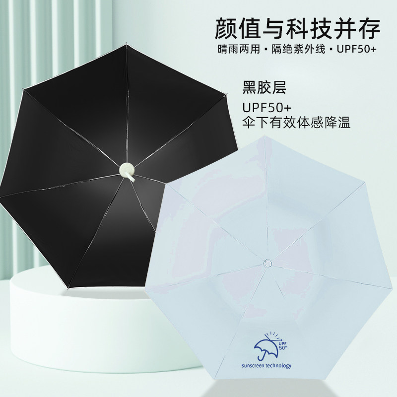 📚 天堂伞净空蓝黑胶伞防晒伞防紫外线太阳伞轻巧便携晴雨伞两用伞