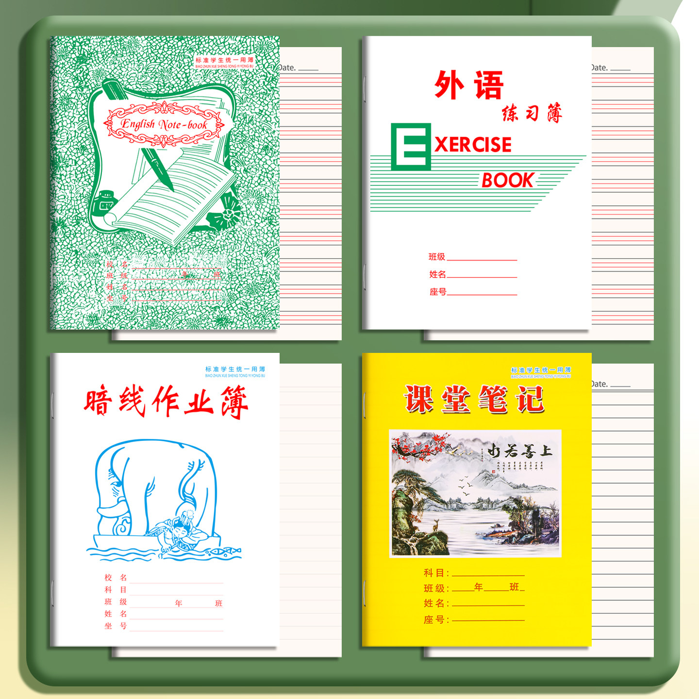 📚 汕头市潮阳区潮南区学校指定统一练习本作业本小学生拼音生字簿数学暗线外语本英语本单线暗线写字本课堂笔记