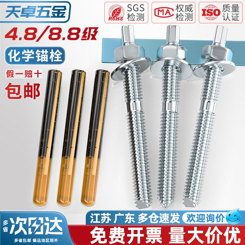 📚 化学膨胀螺栓高强度8.8级镀锌4.8加长化学锚栓螺丝含药剂12M20M24