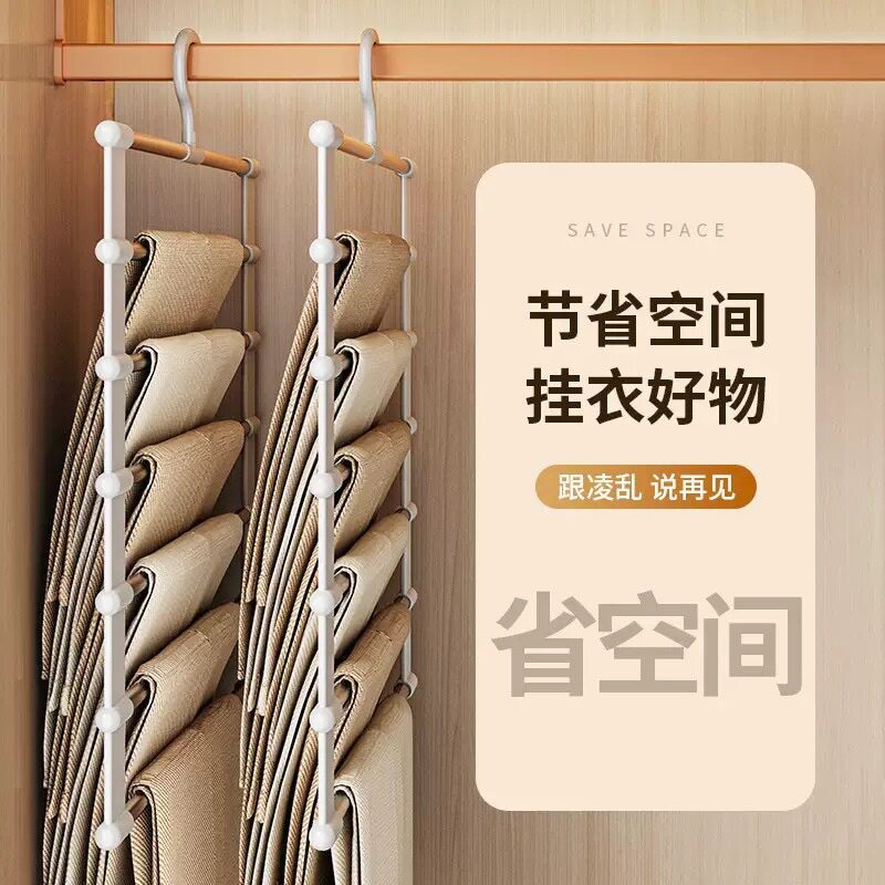 📚 云梯裤架多层不锈钢家用无痕防滑挂裤子专用折叠衣柜内置收纳裤架
