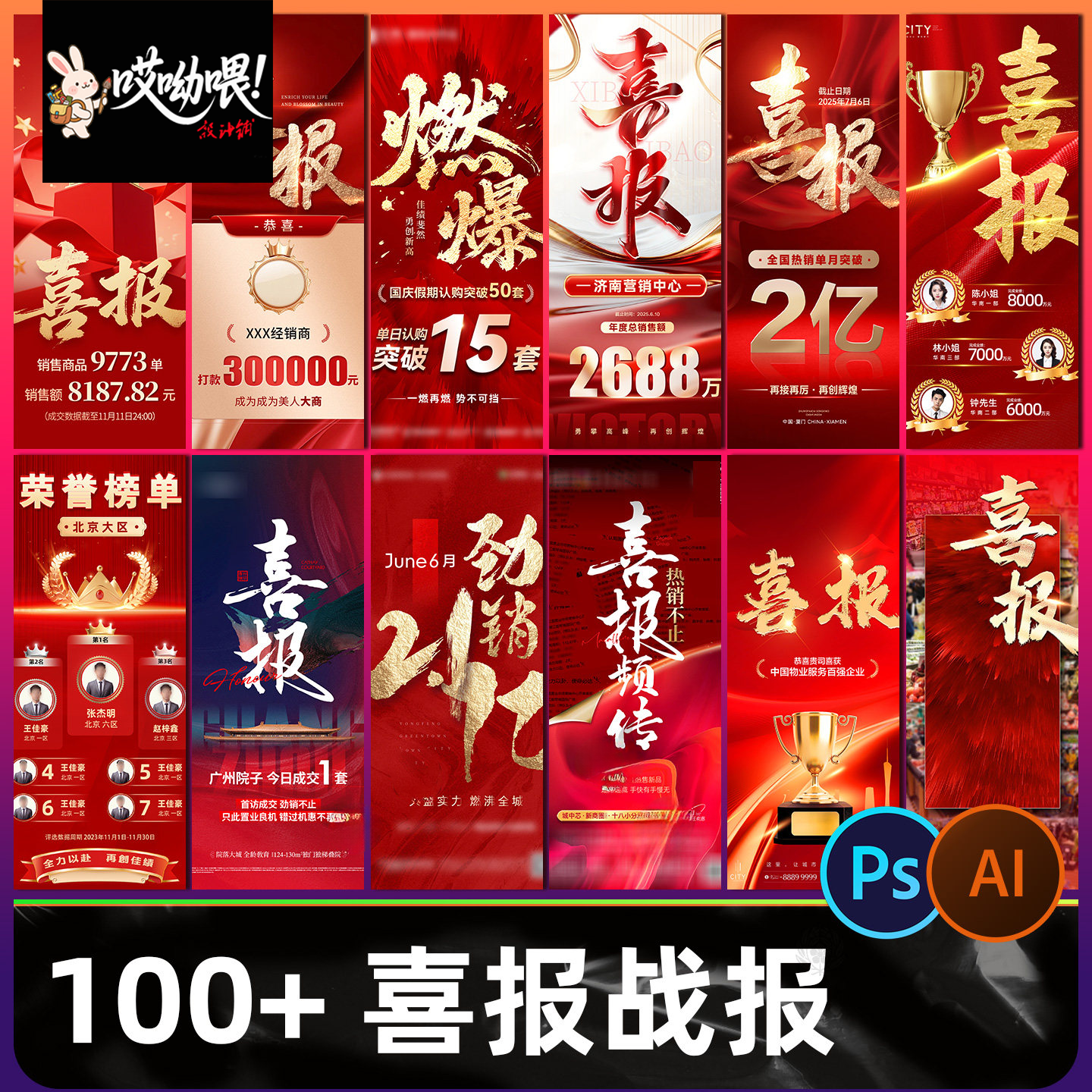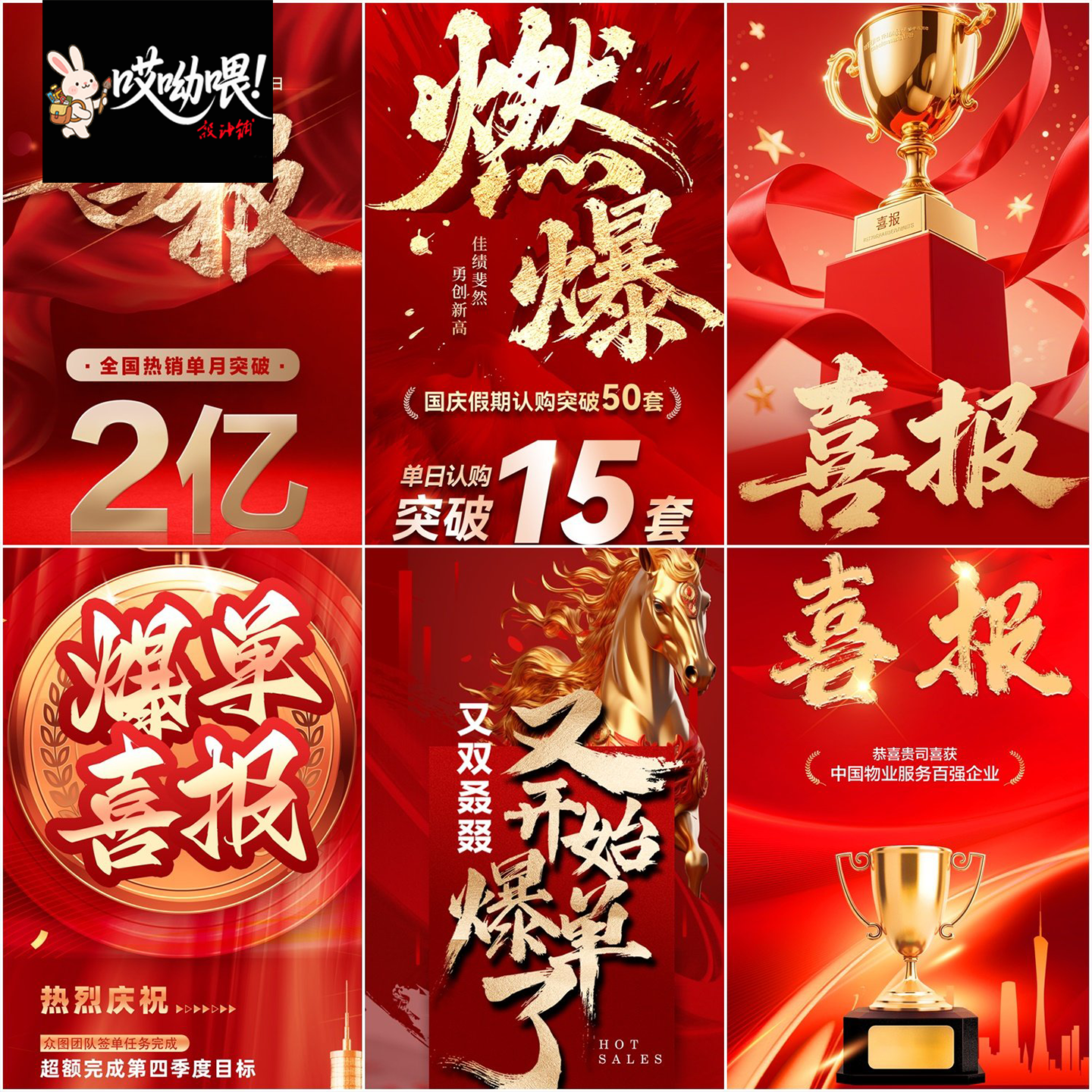 📚 房地产企业销售年终业绩荣誉榜战报喜报红色系列电商海报PSD模板