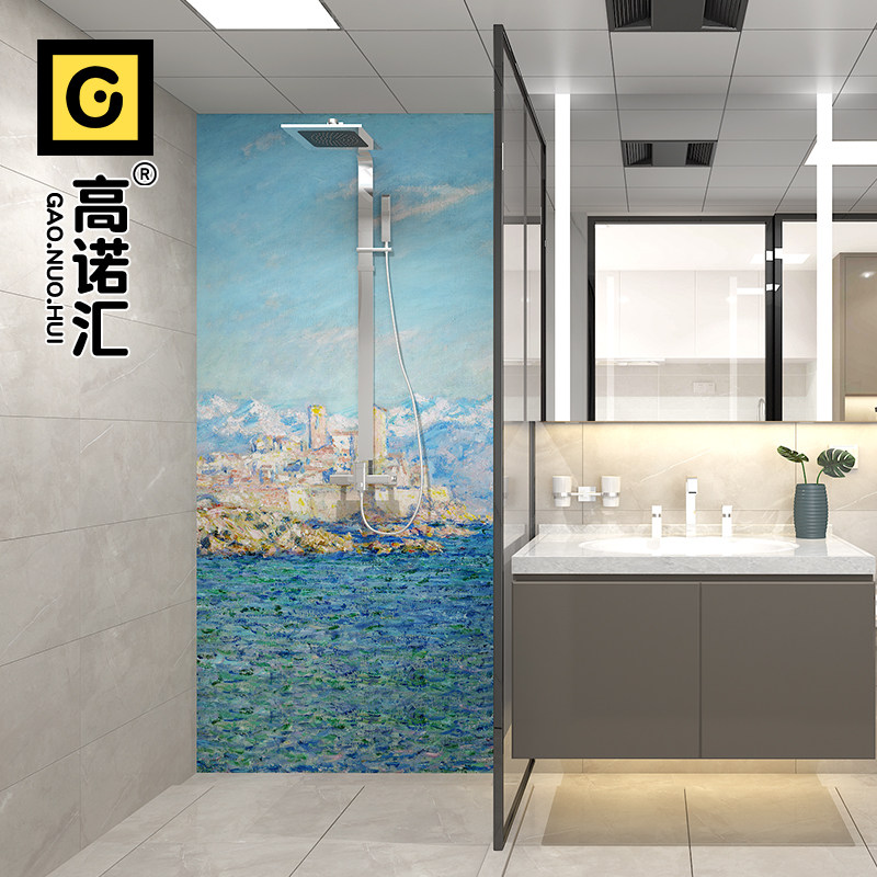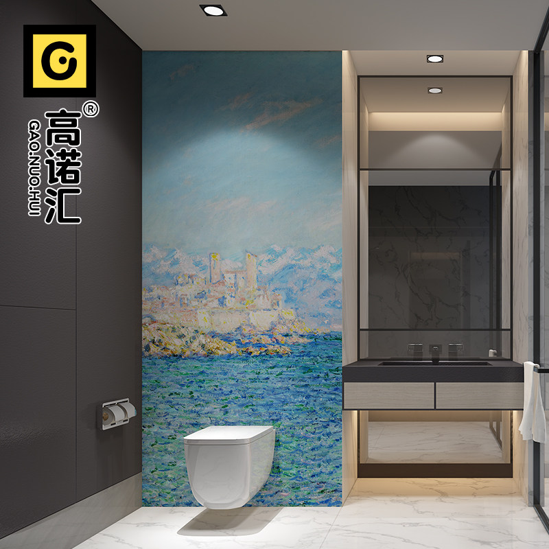 📚 莫奈下午的安提比斯 卫生间墙砖 马桶浴缸背景墙地中海浅蓝色瓷砖