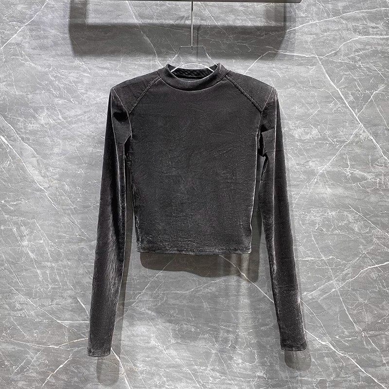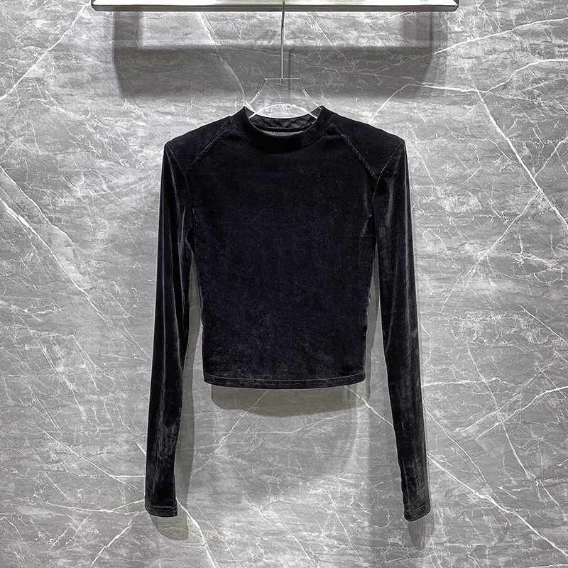 📚 超好看内搭2025冬季新款圆领修身短款上衣高级感丝绒打底衫T恤女