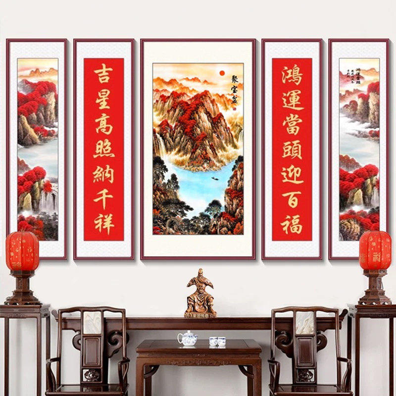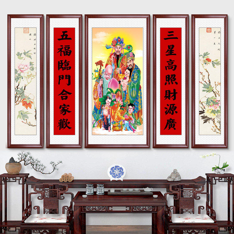 📚 农村中堂客厅挂画堂屋福禄寿福星高照牌匾大气装饰大厅墙山水字画