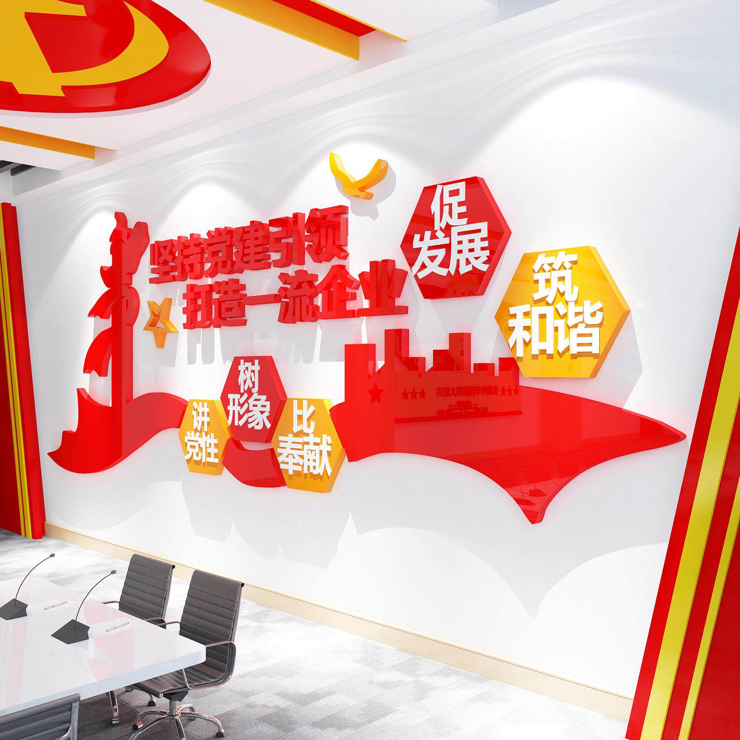 📚 七月党建文化墙展板旅游活动爱国主题办公室会议室背景布置装修