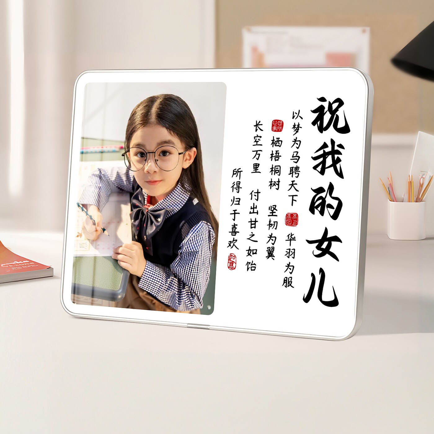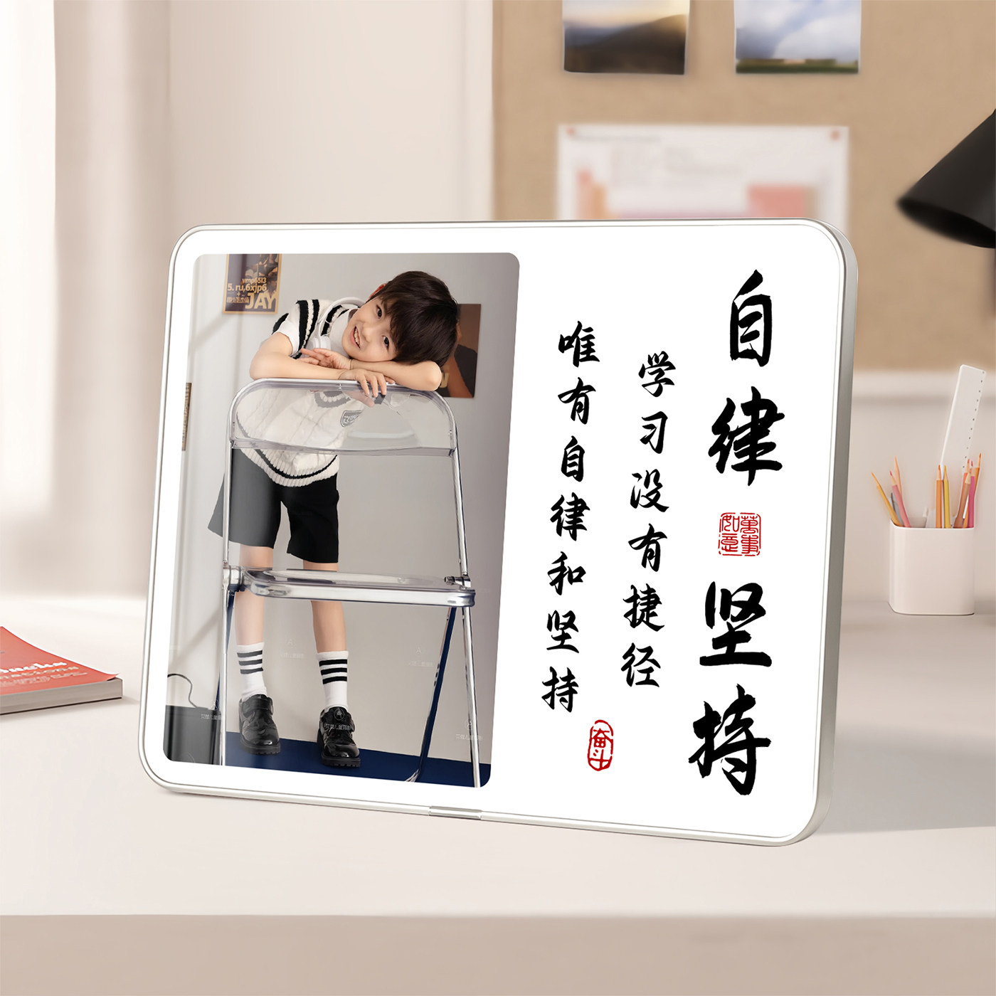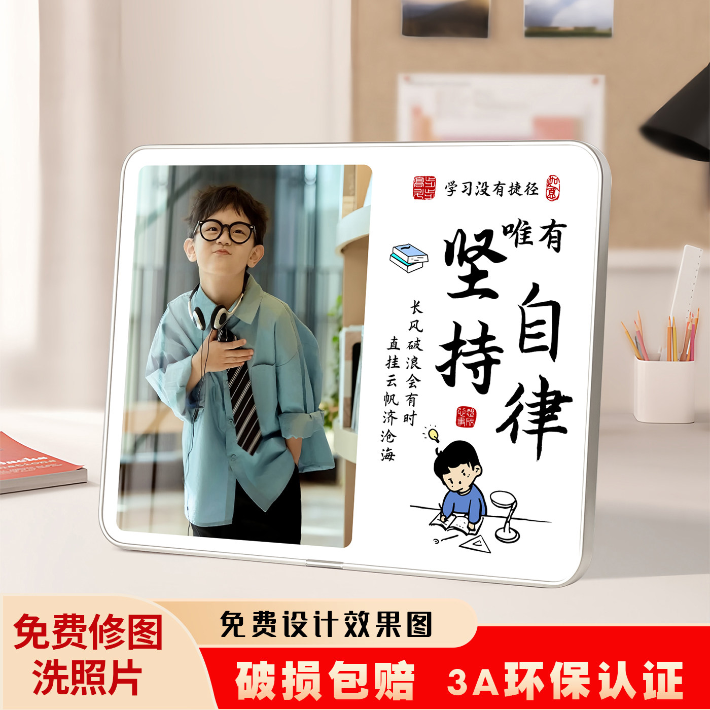 📚 学习很苦坚持很酷摆件自律字画鼓励孩子桌面定制照片学生励志摆台