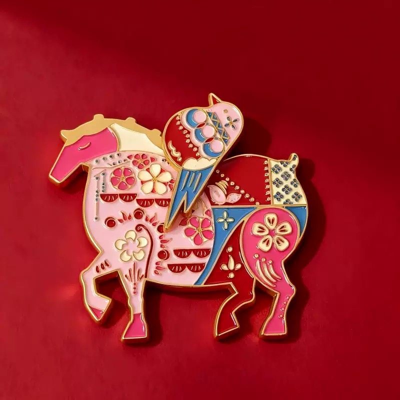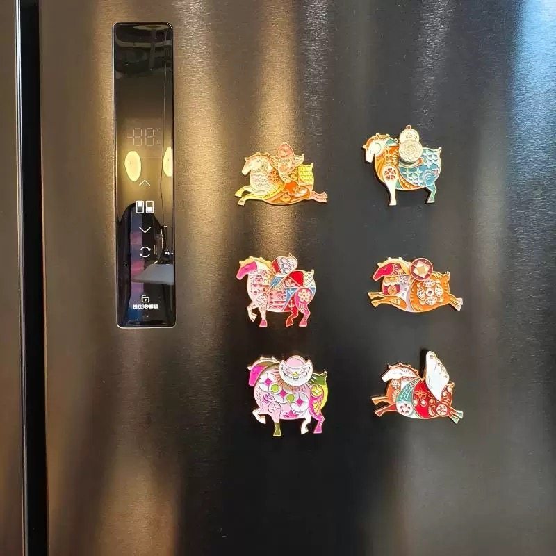 📚 西安文创马年礼物正品唐富贵马上系列金属旋转冰箱贴有喜有福有财