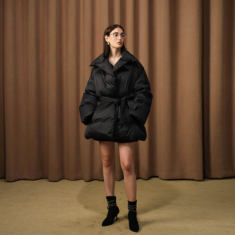 📚 DIANAVEVINA冬季新款大翻领云朵零压90鸭绒中长款系带羽绒服