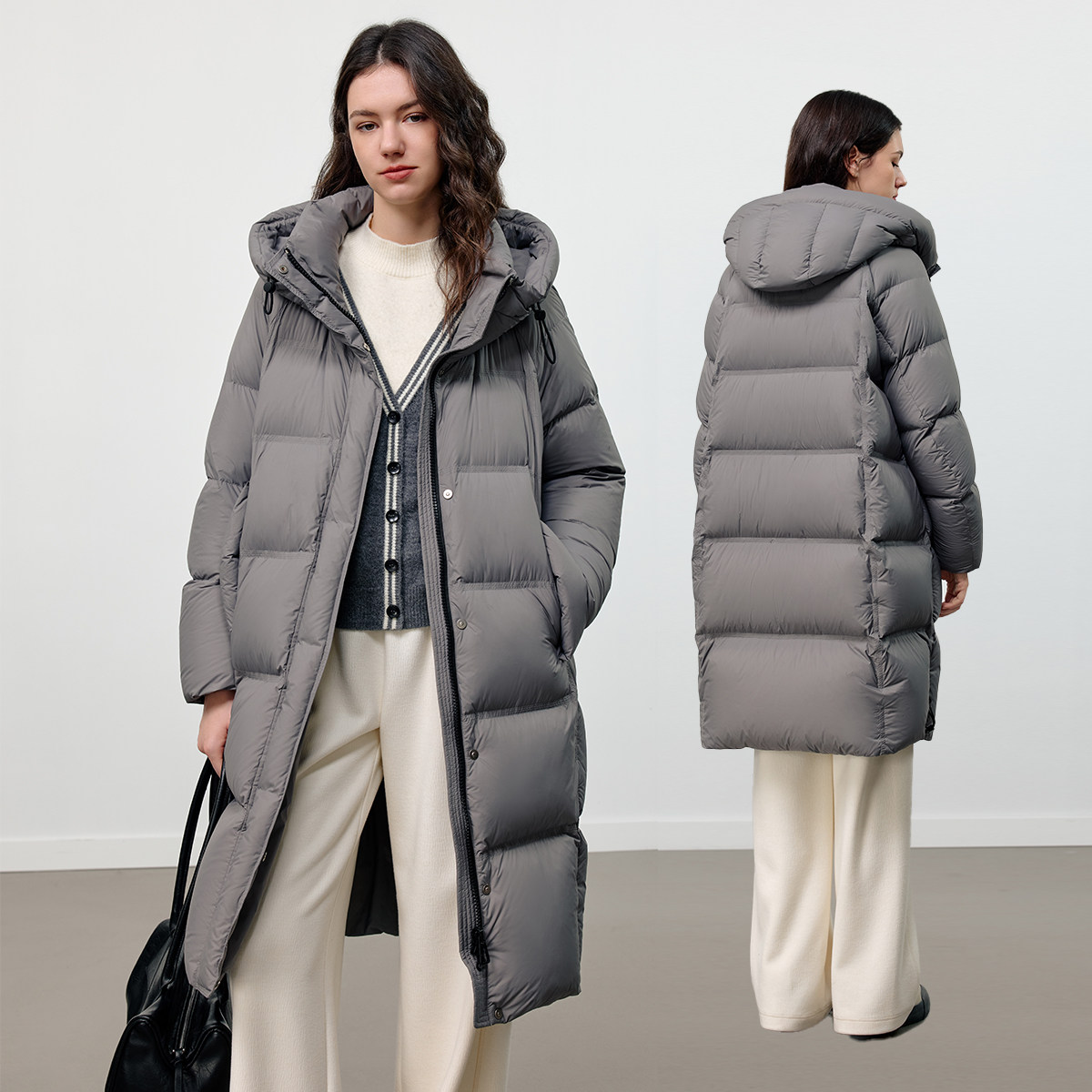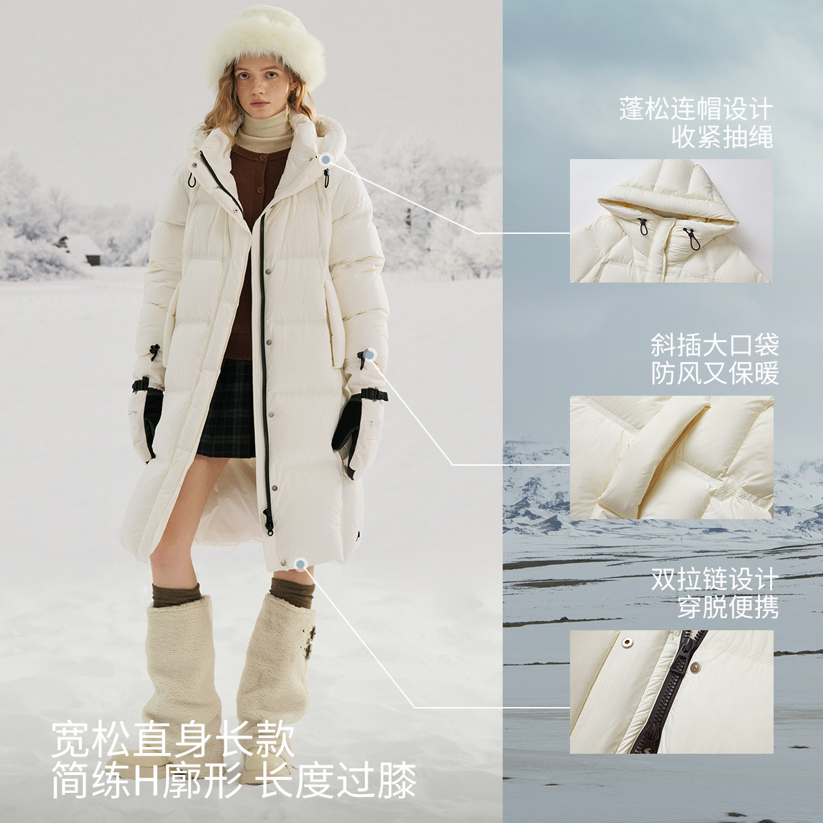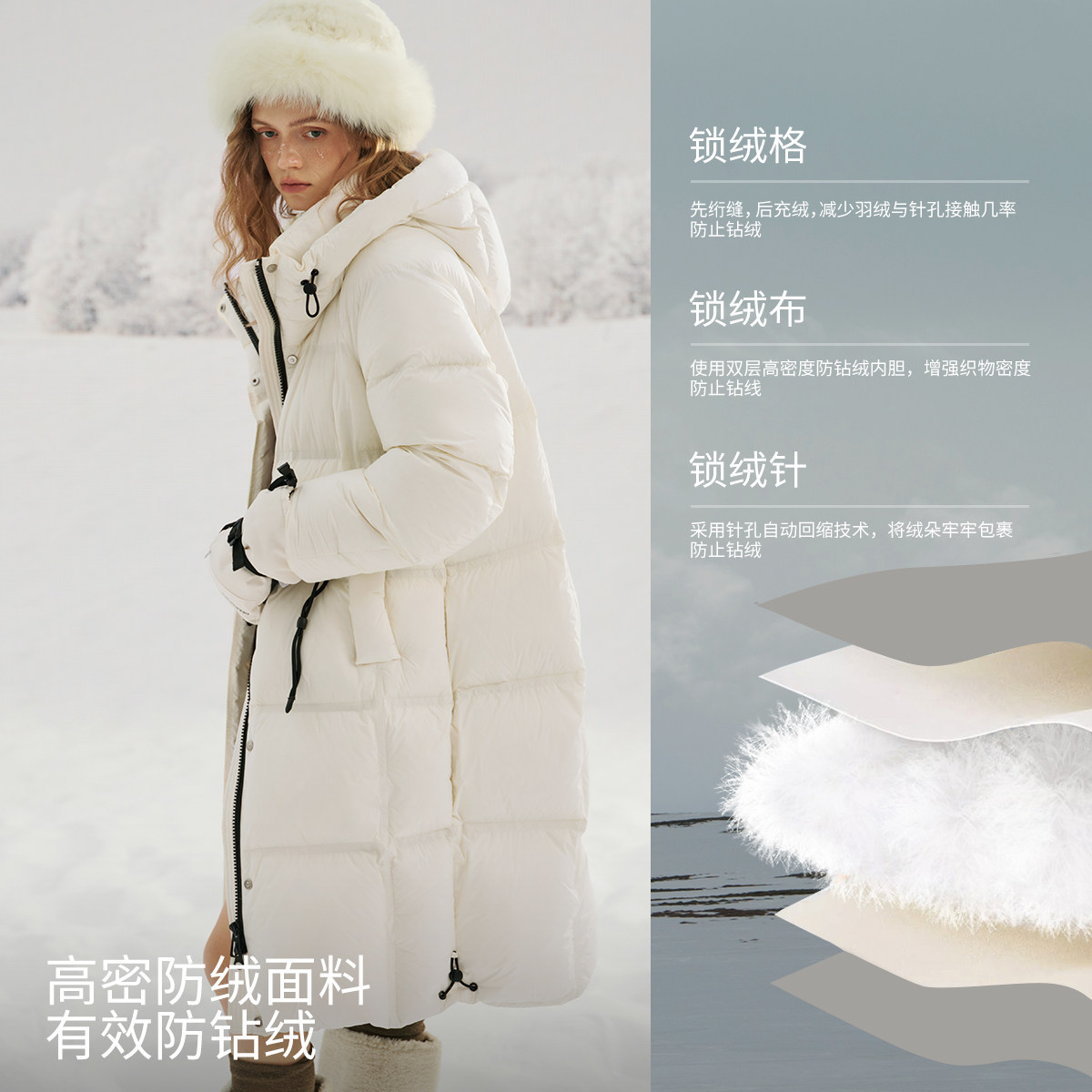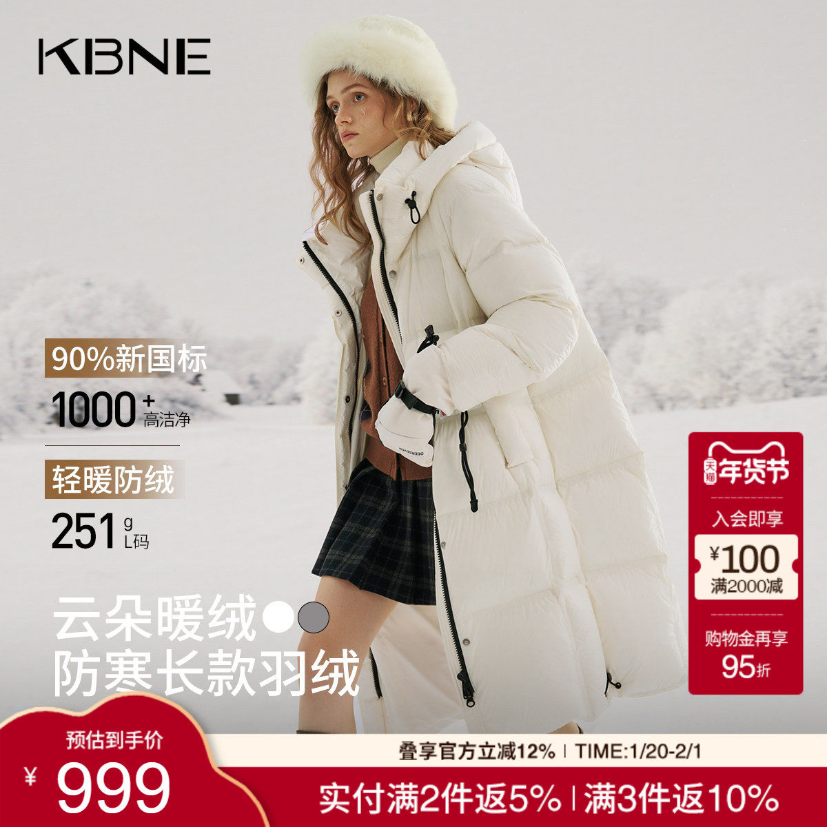 📚 KBNE零压感显瘦云朵抽绳连帽羽绒服女2025冬季新款长款羽绒服外套