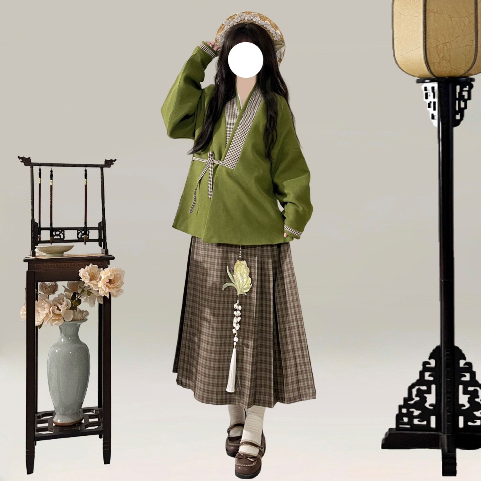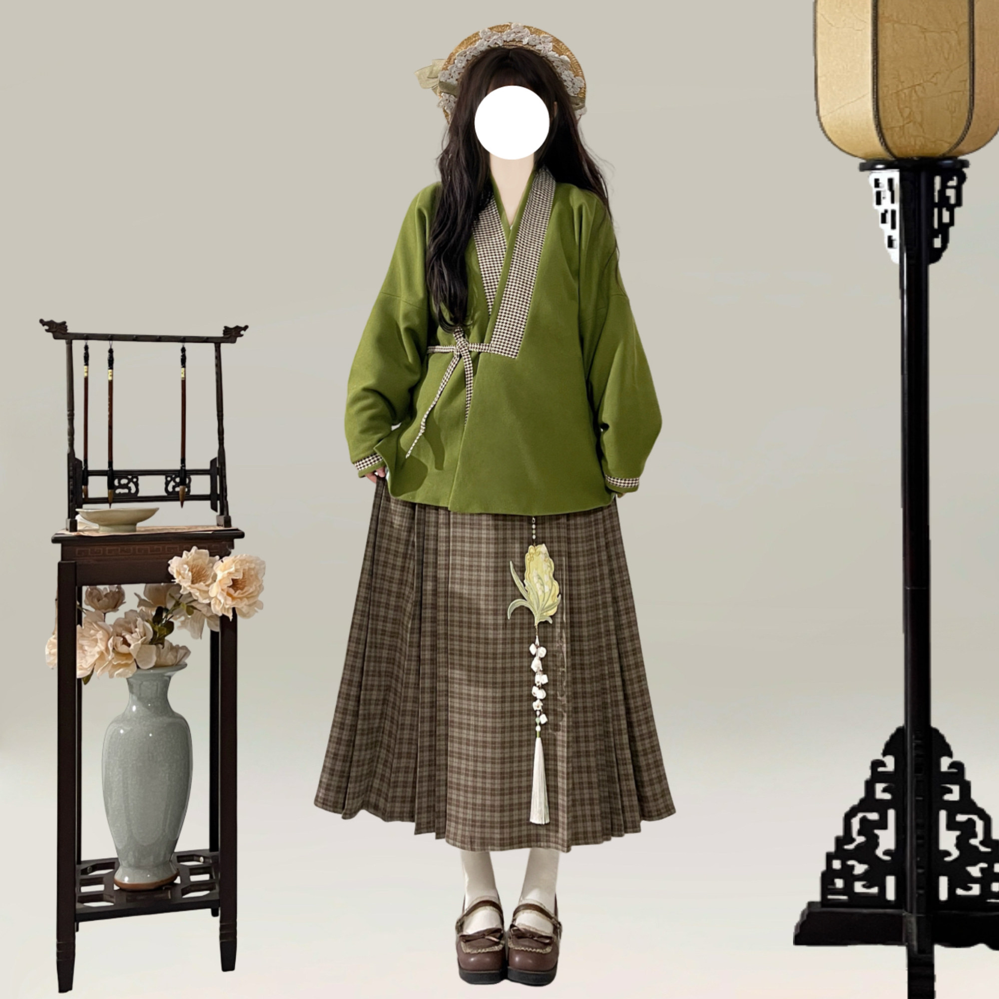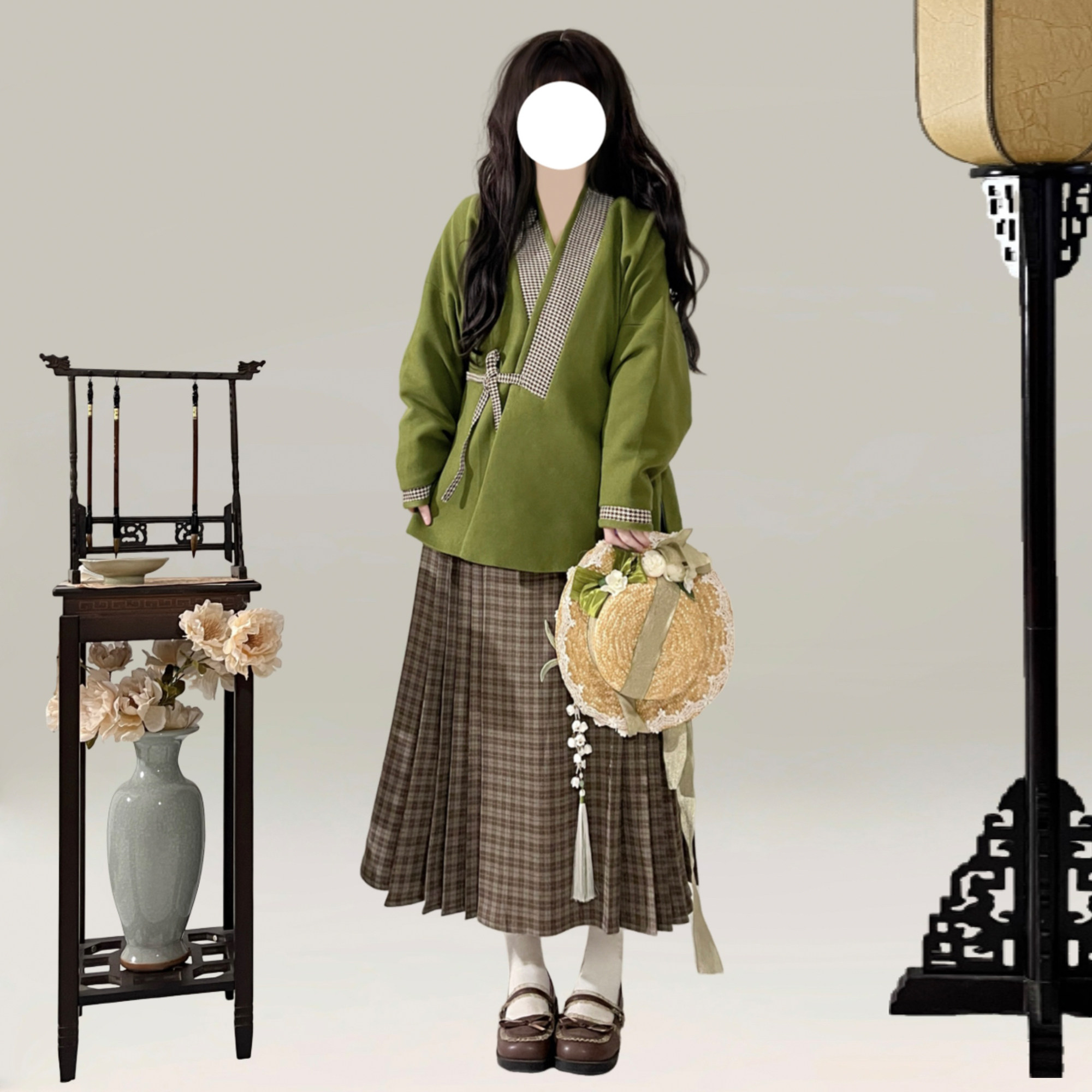 📚 梦桑塔汉服秋冬新品绿色毛呢保暖日常通勤大码短款马面裙明制宽松