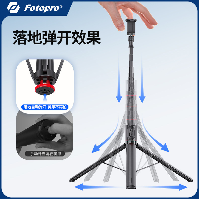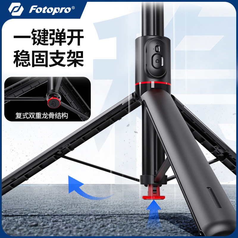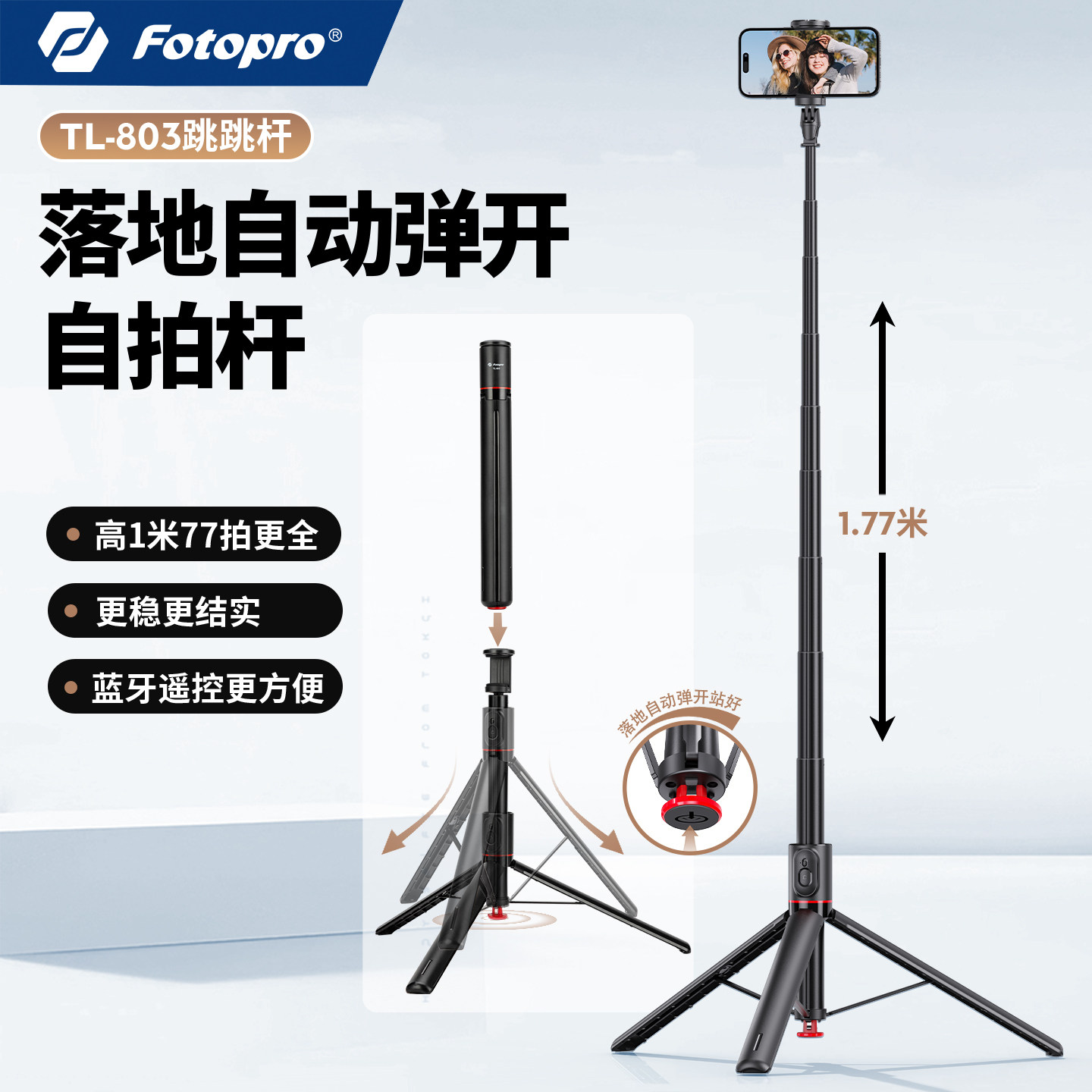 📚 富图宝落地式自拍杆TL803三脚架手机便携超长支架 手持户外自拍神器网红直播vlog视频防抖 拉高1.77米三角架