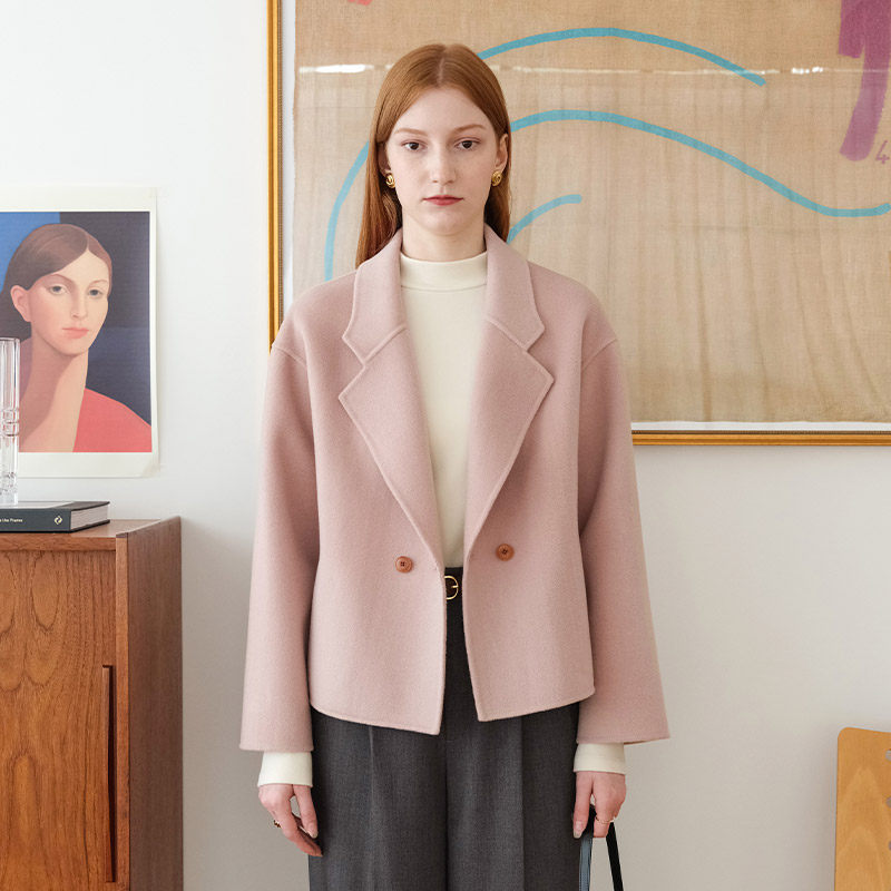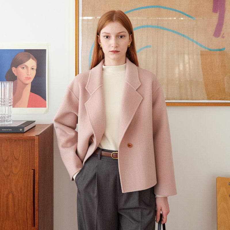 📚 然若 黛粉色西装领双面呢羊毛大衣女款2025新款冬装短款毛呢外套