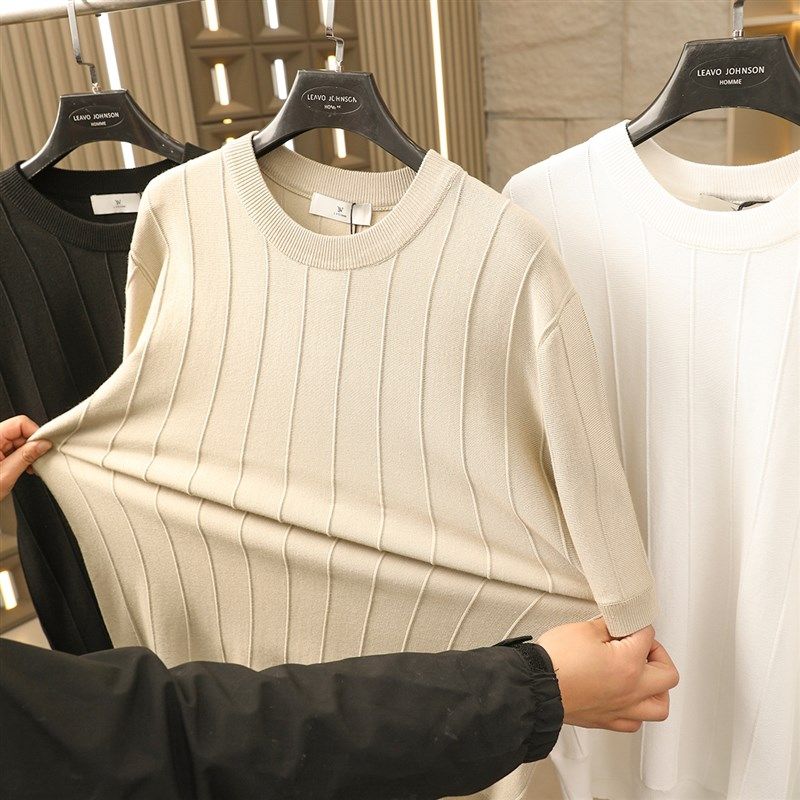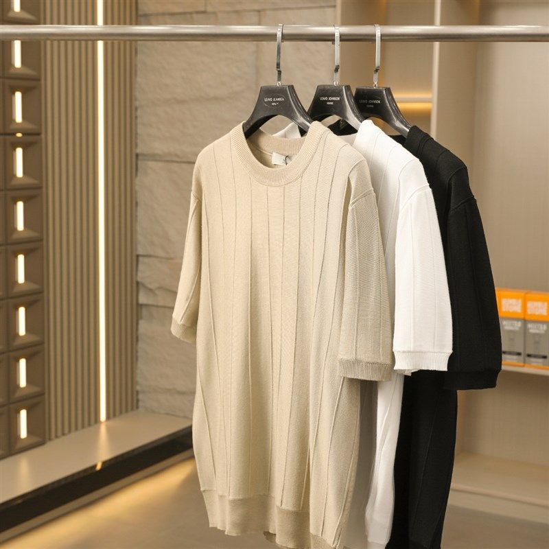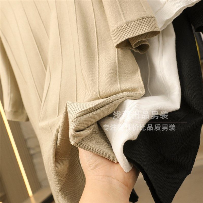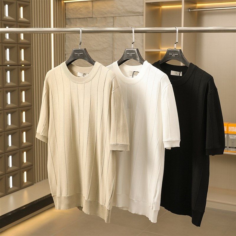 📚 老钱风!轻奢品质!满分高级感!针织冰感纱线!男纯色短袖T恤衫