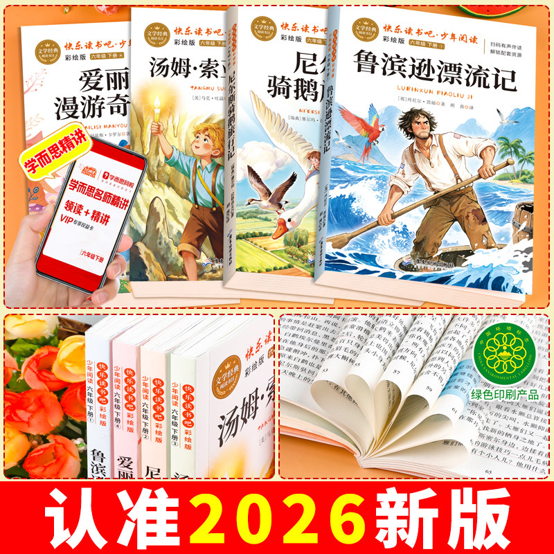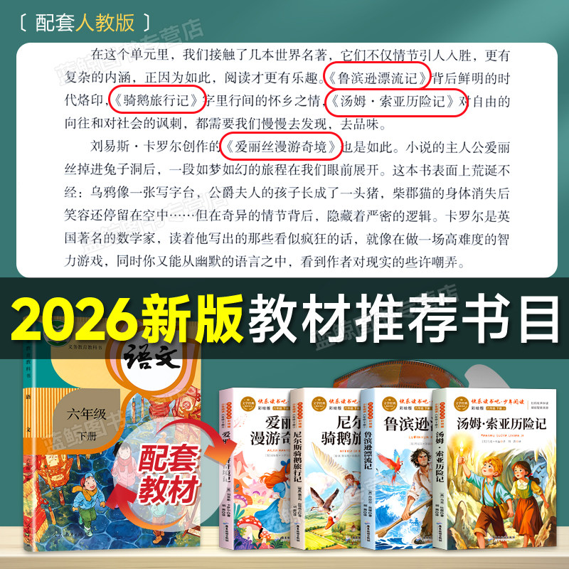 📚 鲁滨逊漂流记六年级下册必读课外书快乐读书吧全套4册爱丽丝漫游奇境记汤姆索亚历险记尼尔斯骑鹅旅行记原著完整正版老师推荐书目
