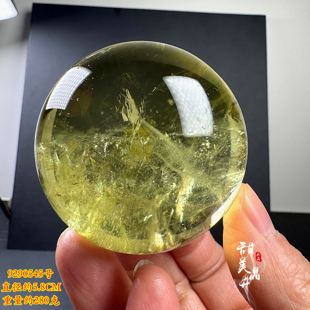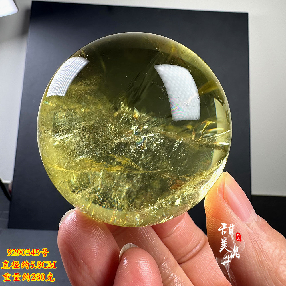 📚 天然黄水晶球摆件 原石打磨 少许彩虹七彩胶花 赠送底座