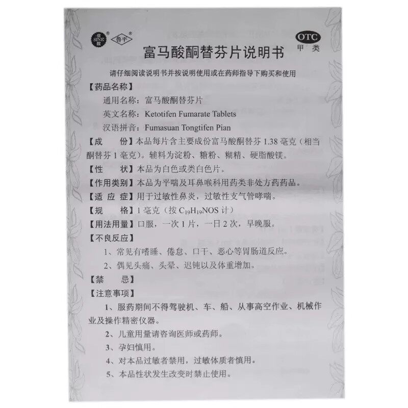 📚 鲁平 富马酸酮替芬片100片