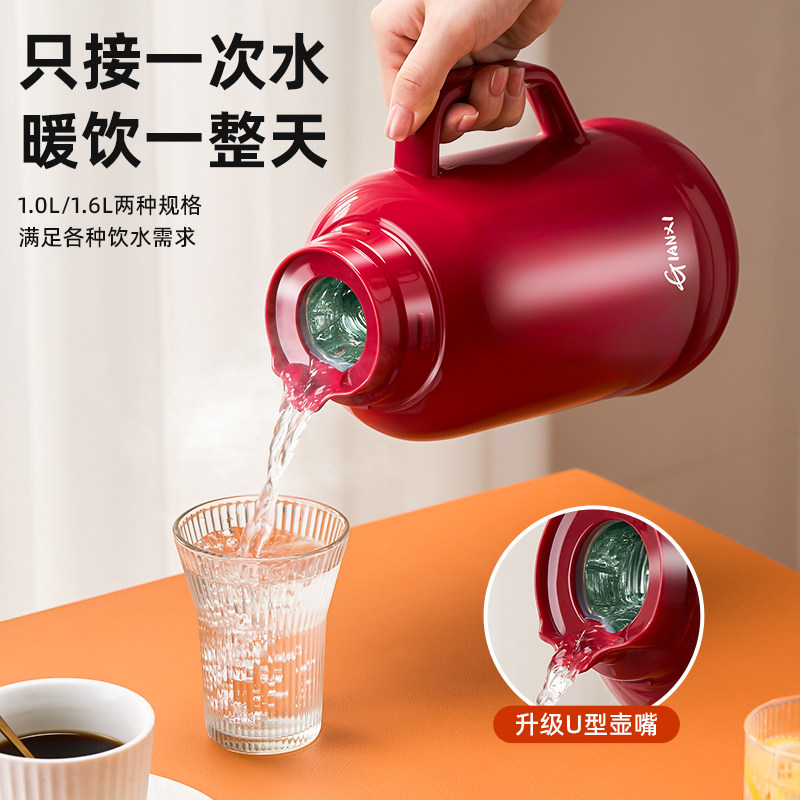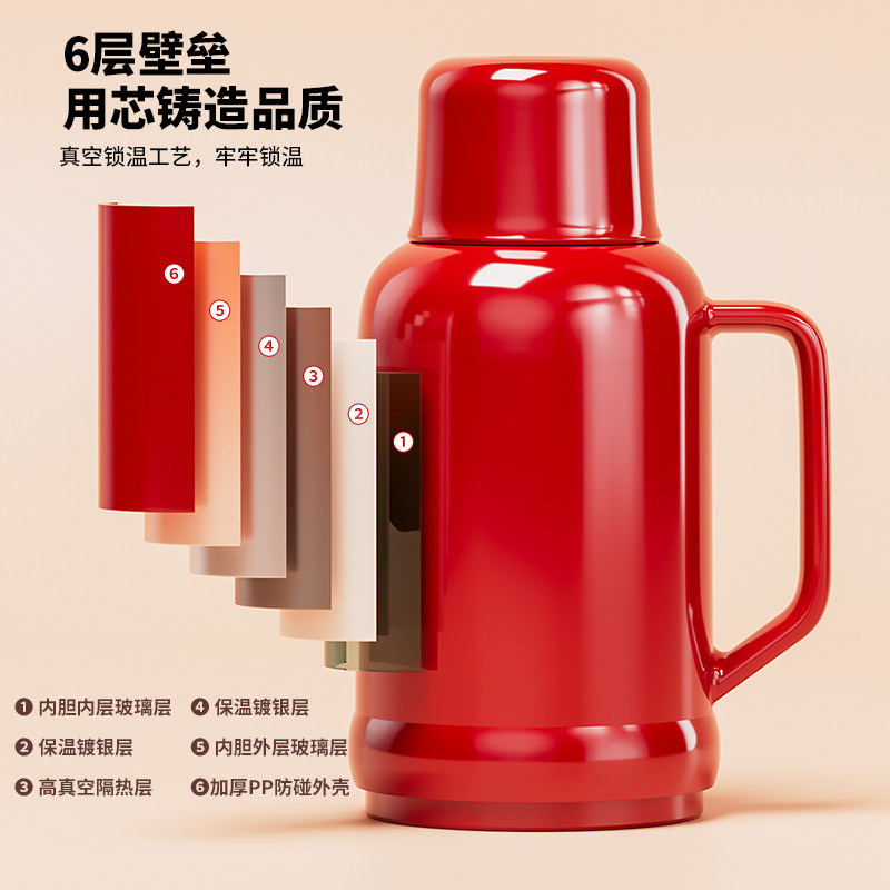 📚 日本进口红色保温壶结婚陪嫁水壶家用暖瓶玻璃内胆大容量新款冬季