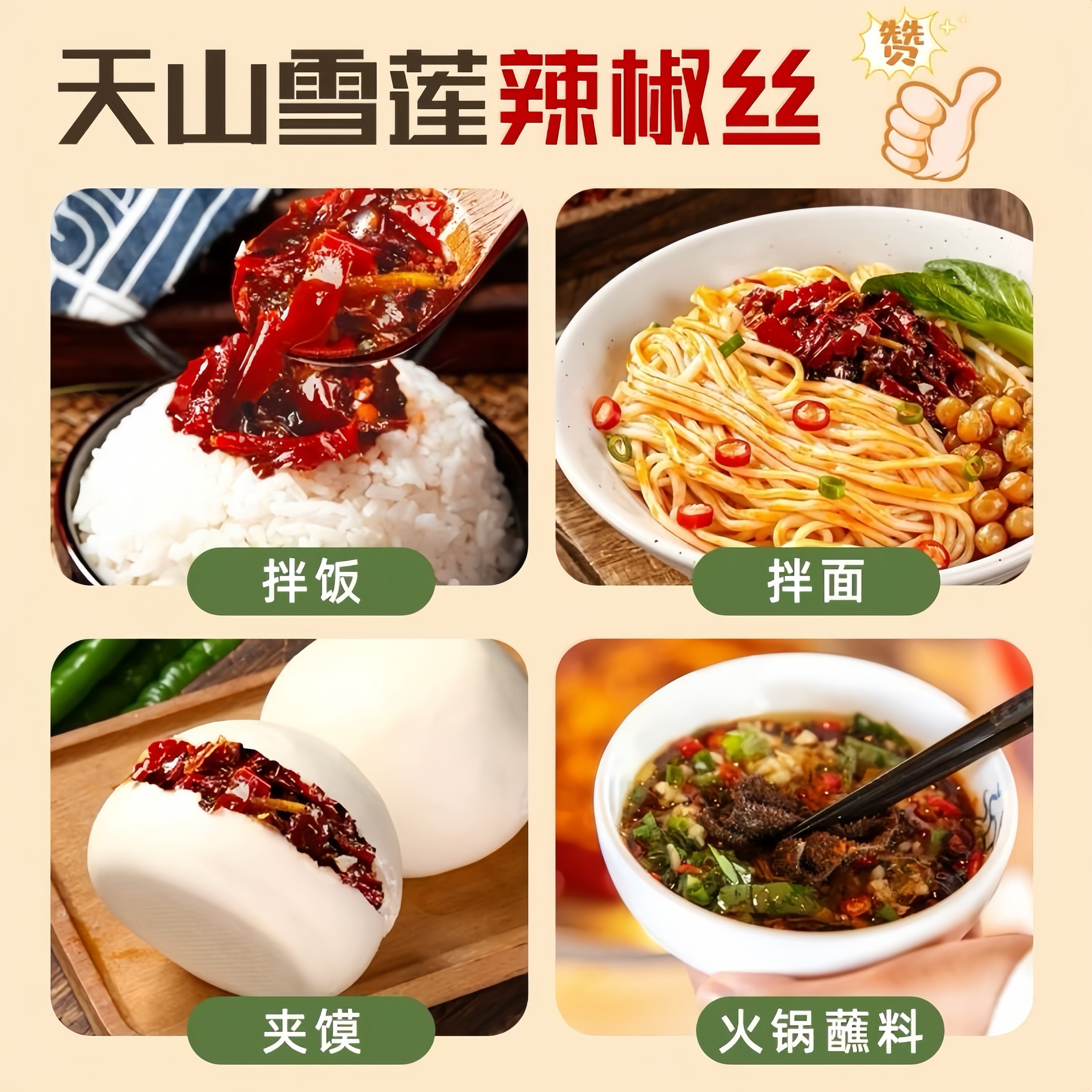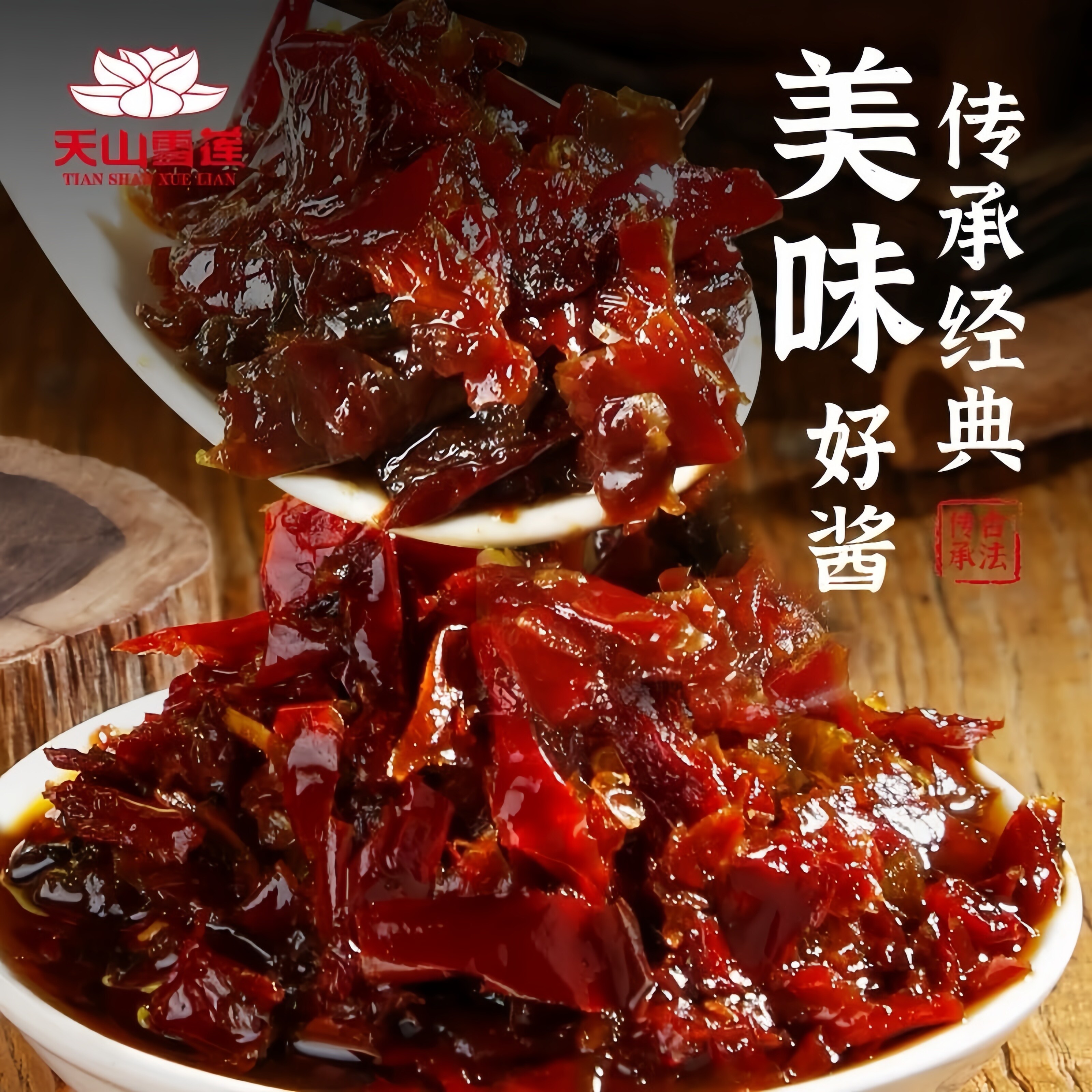 📚 新疆特产中德食品正宗天山雪莲辣椒丝装可商用牛肉皮子酱