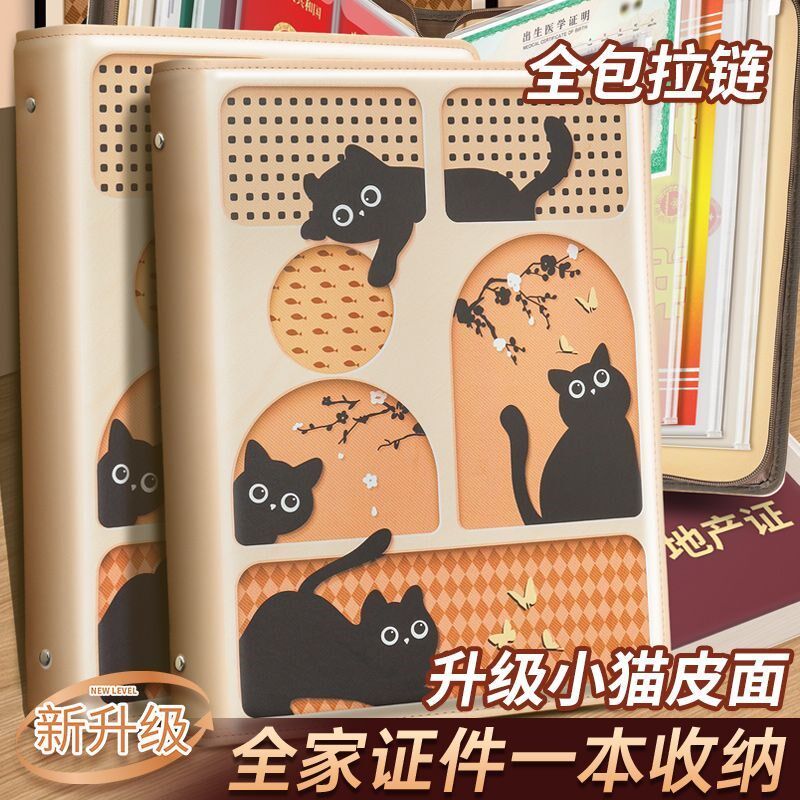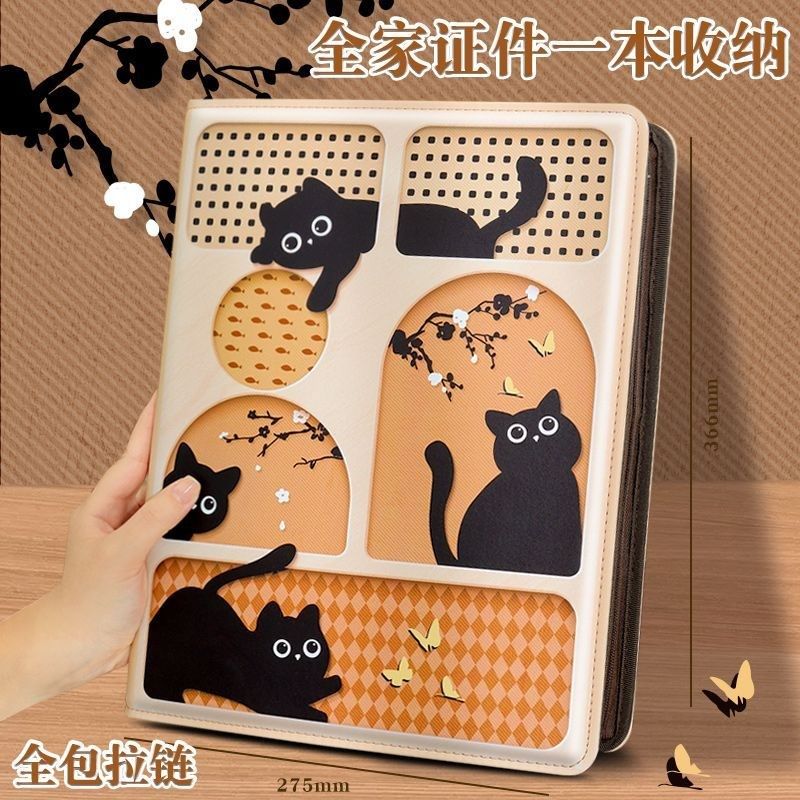 📚 优选猫咪A4拉炼证件收纳包卡包文件户口本疫苗本出生证明护照驾驶