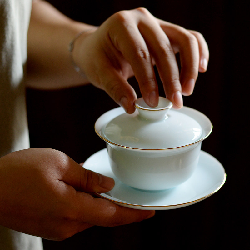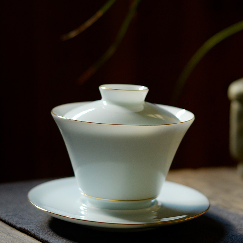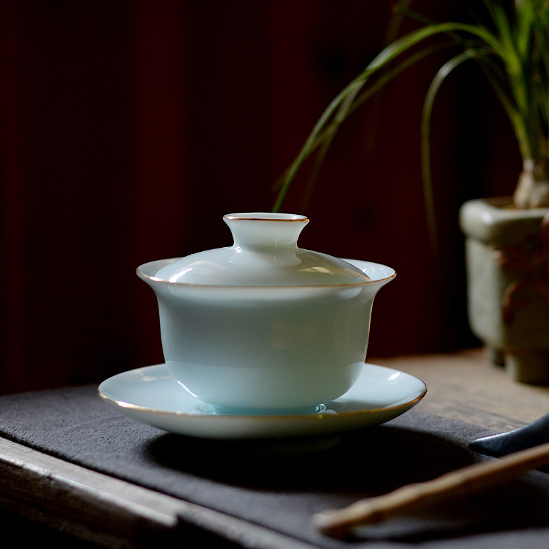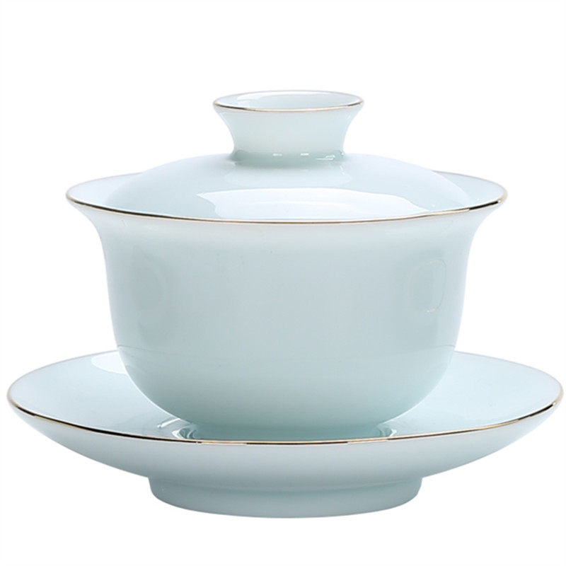 📚 七色福 青瓷盖碗茶杯大号白瓷陶瓷功夫茶具套装三才敬茶碗泡茶壶