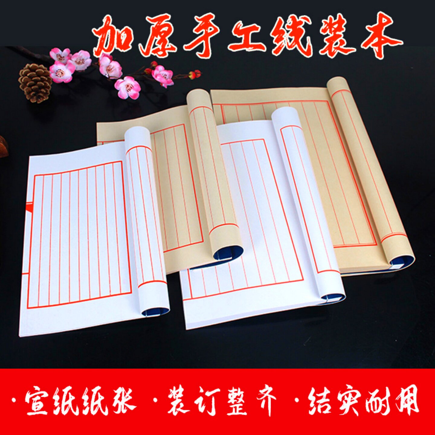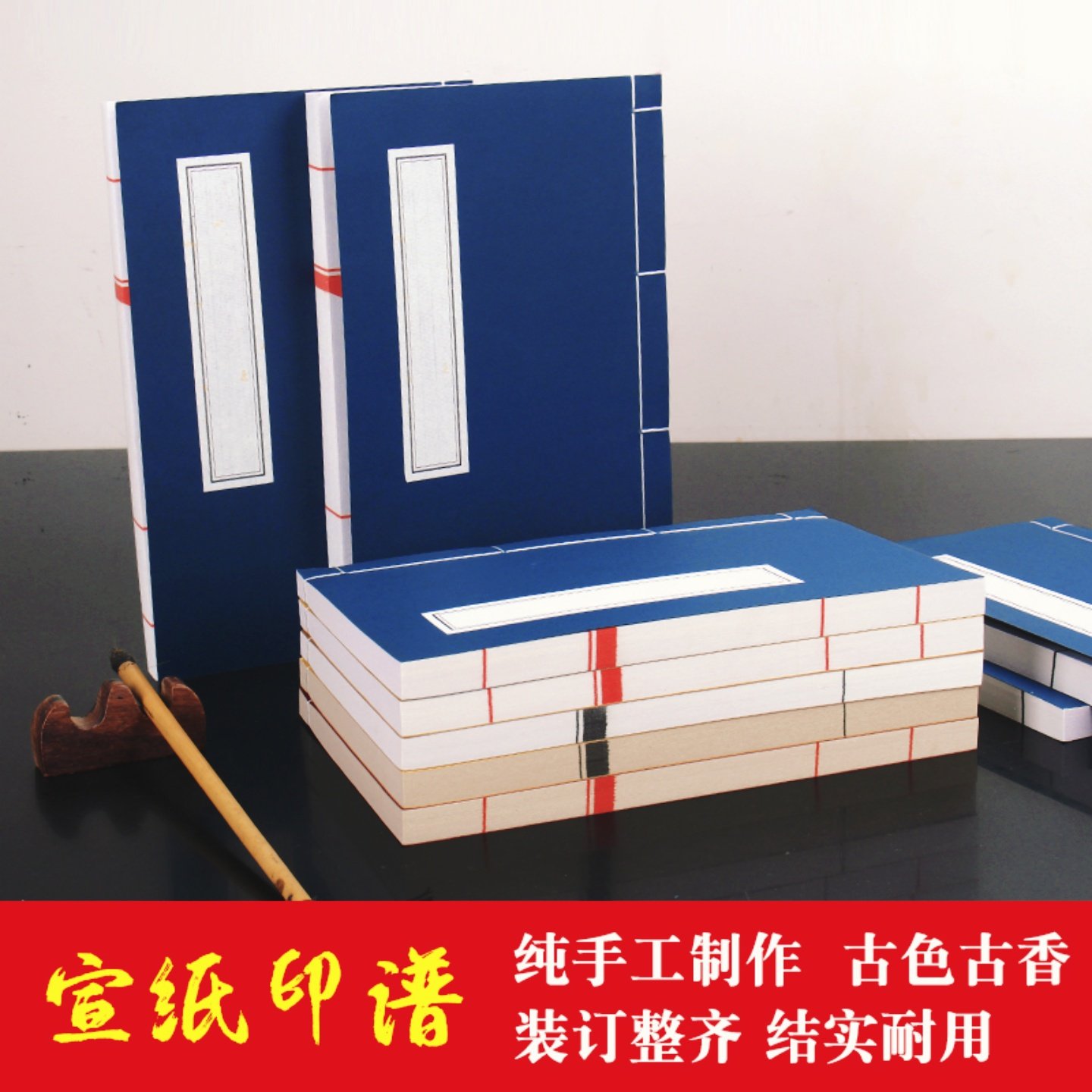 📚 宣纸手工线装本仿古红八行十行空白门框方格印谱家谱小楷手抄经书