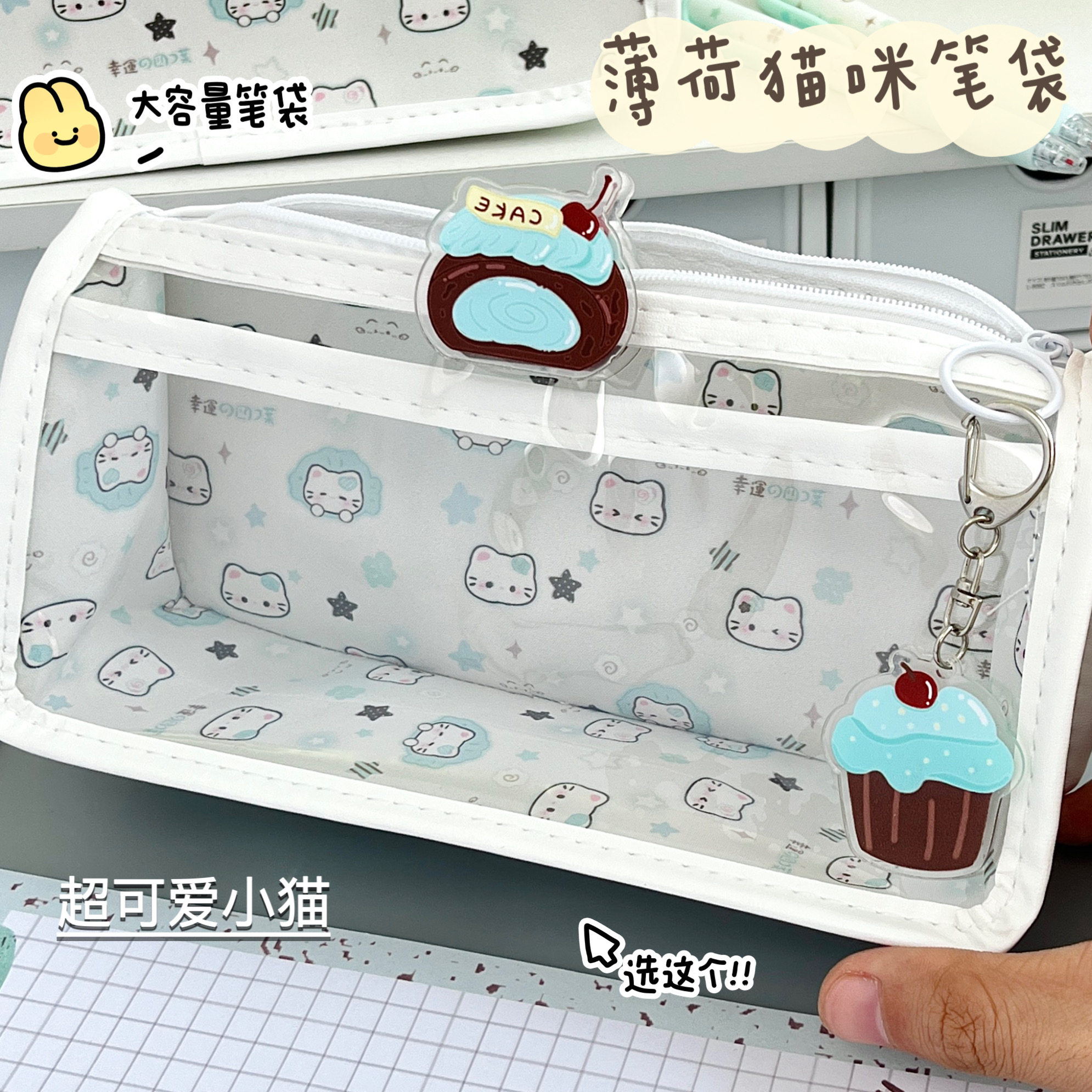 📚 薄荷猫咪透明笔袋文具袋女生大容量初高中小学生考试专用中考公务员国考ins高颜值简约男女孩铅笔盒2026新款