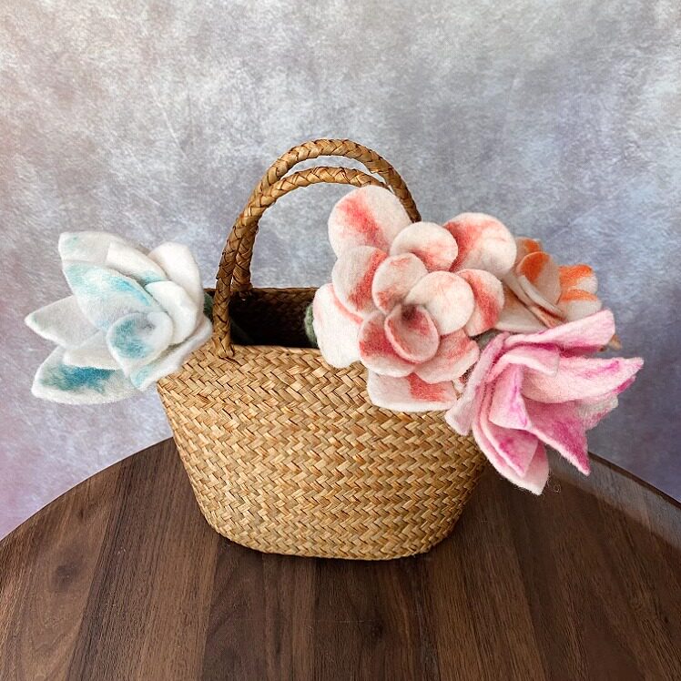 📚 羊毛毡手工假花 仿真花干花摆放桌面吊篮单只花藤花卉