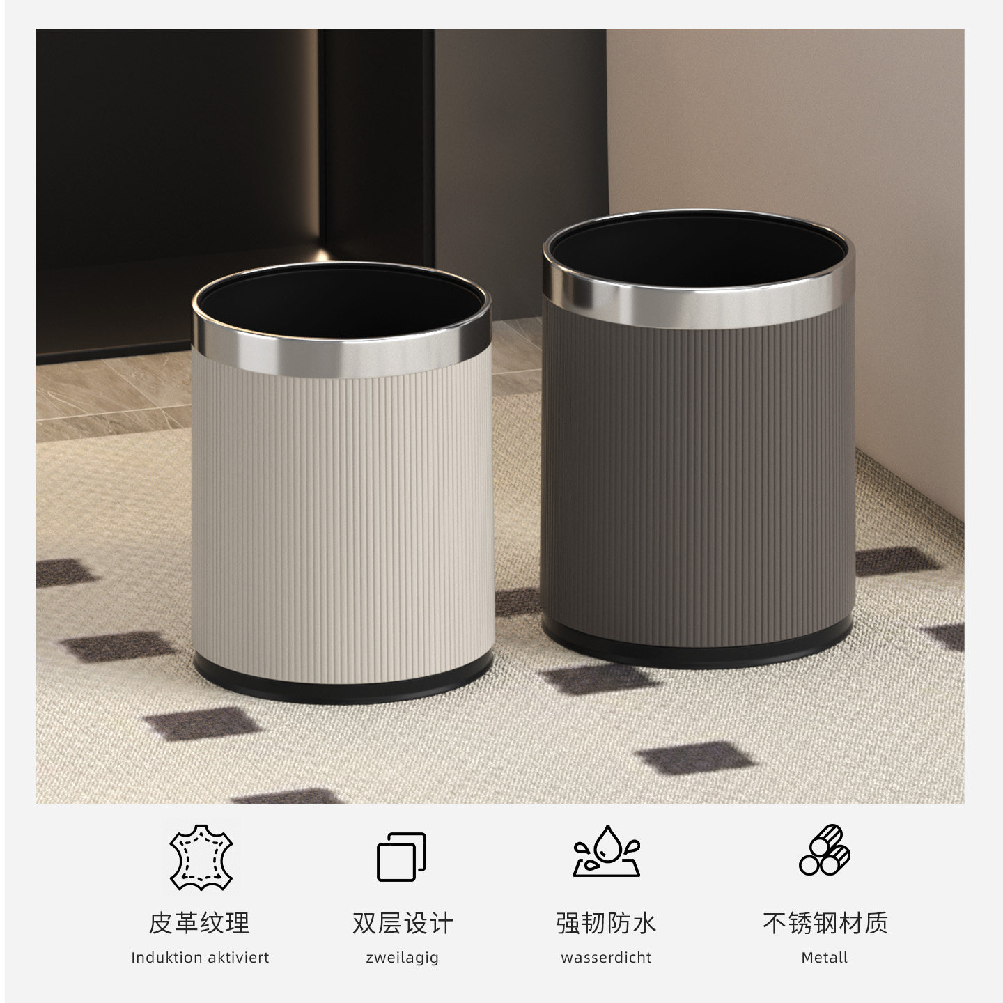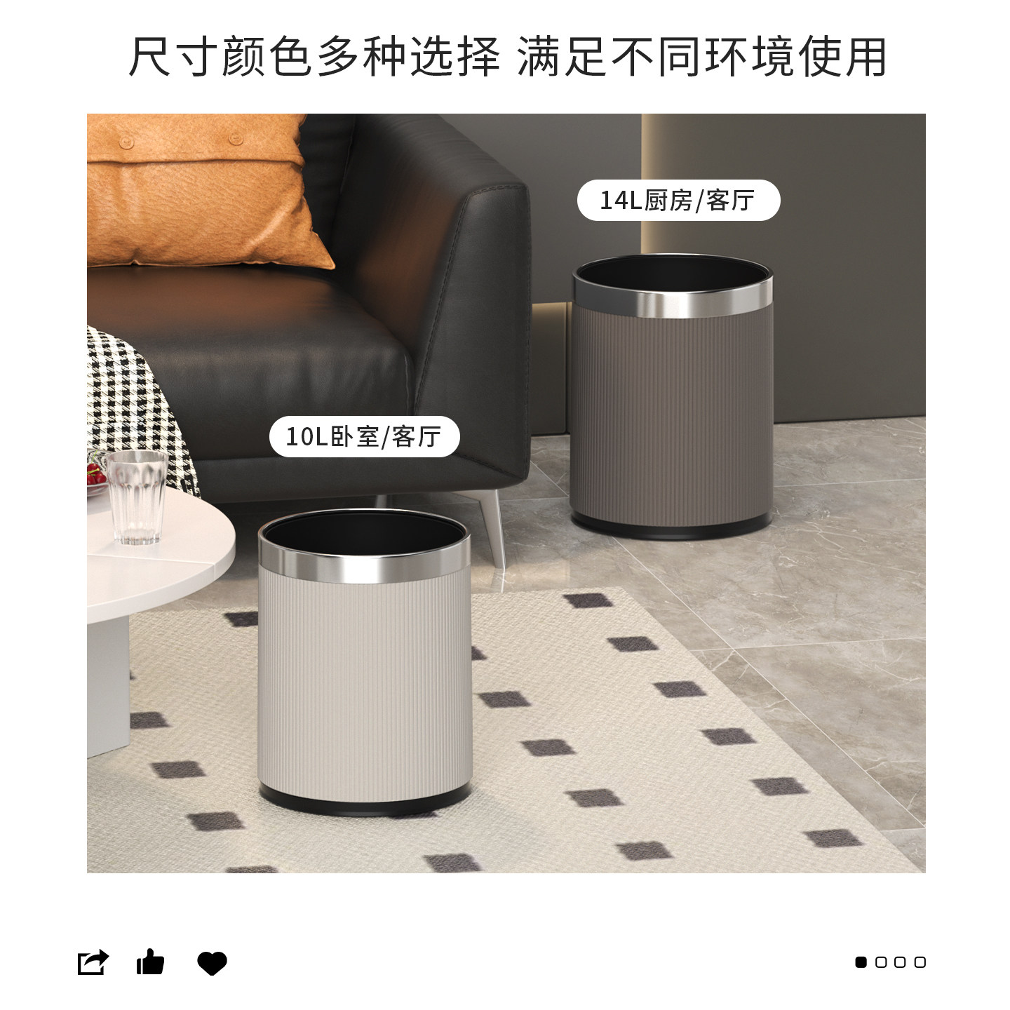 📚 客厅垃圾桶意式极简风家用房间卫生间办公室酒店高颜值轻奢皮无盖