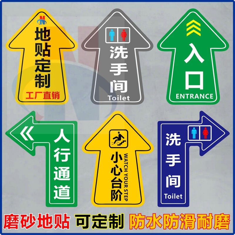 📚 箭头地贴标识磨砂耐磨指示贴医院洗手间超市商场出入口定制标志牌