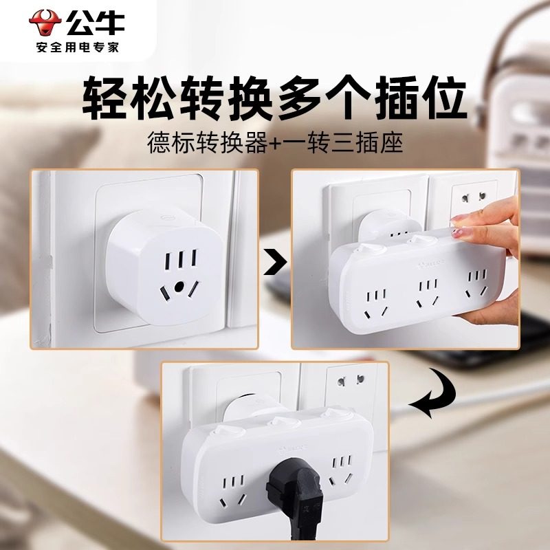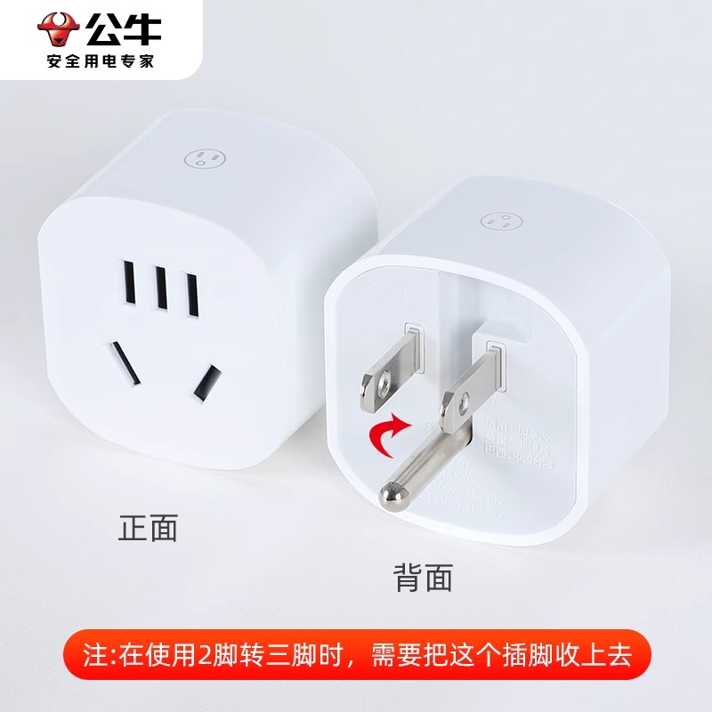 📚 公牛两脚转三脚插座转换器迷你二孔转三孔转接头2变3项插头不带线