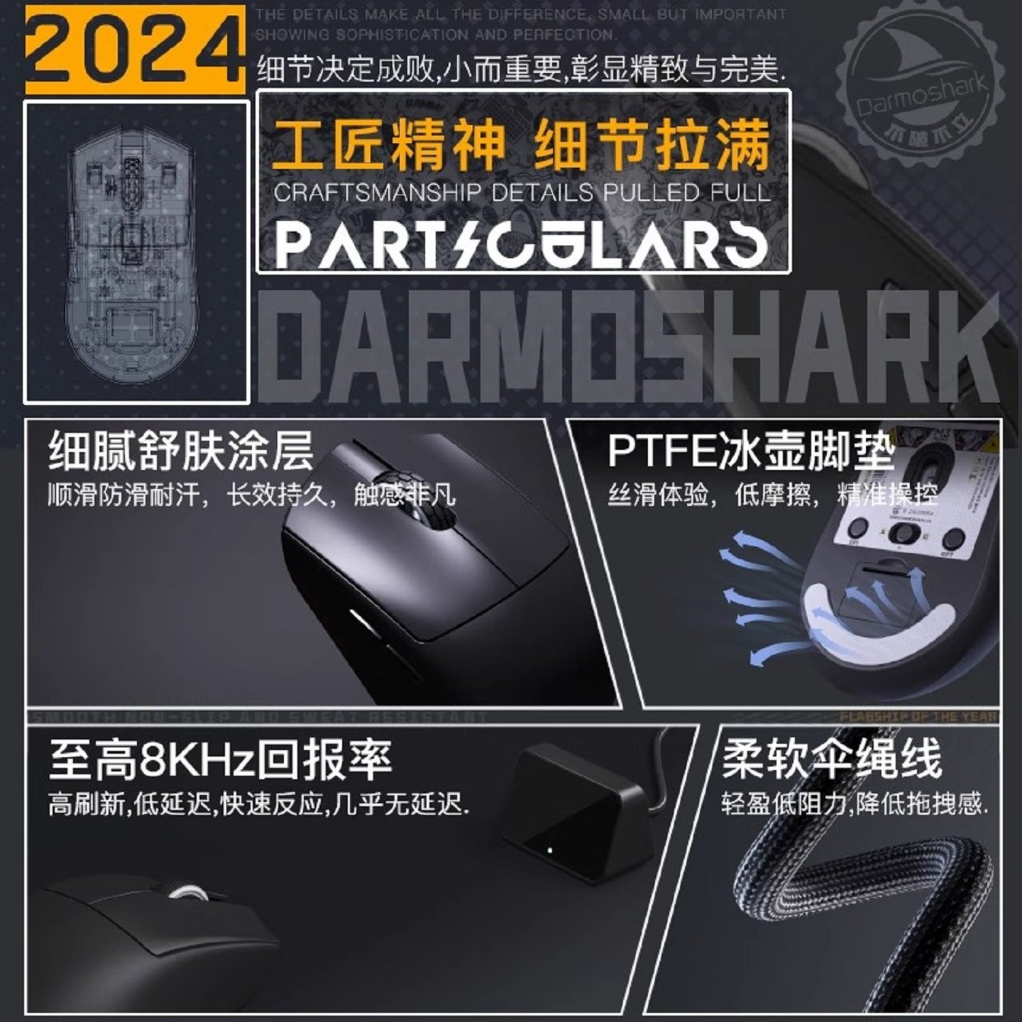 📚 Darmoshark达摩鲨M3PROMAX原相PAW3950大手54g轻量化无线三模鼠标
