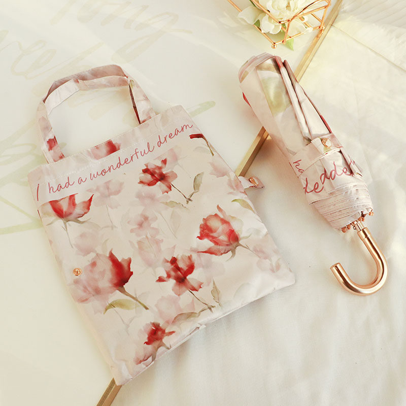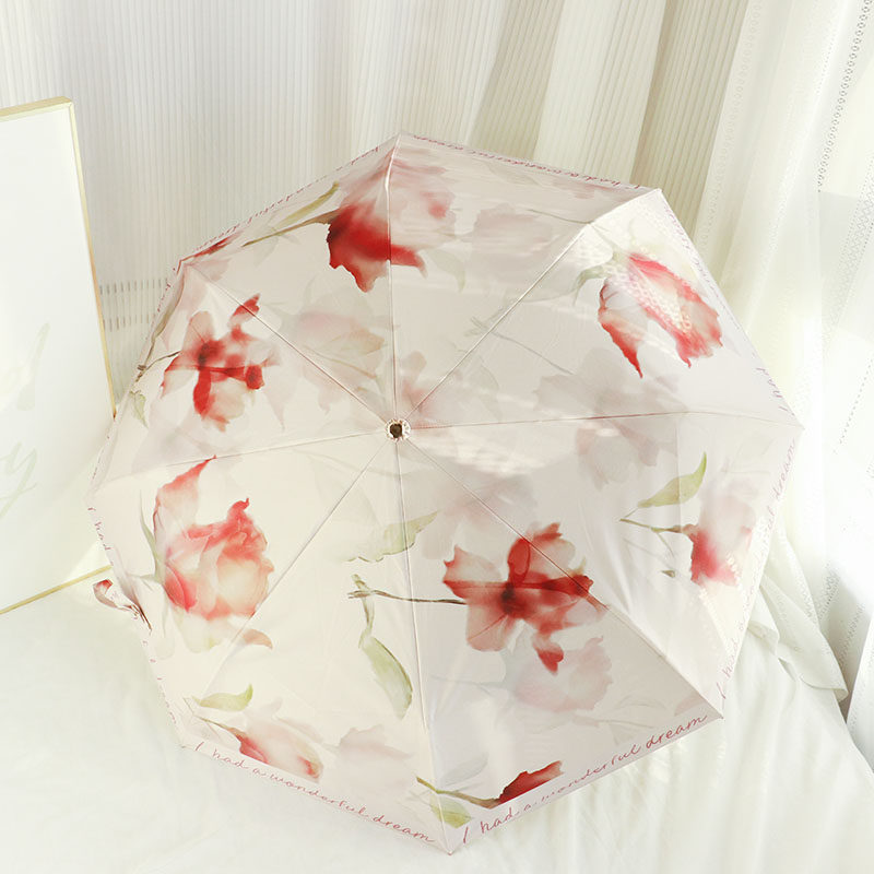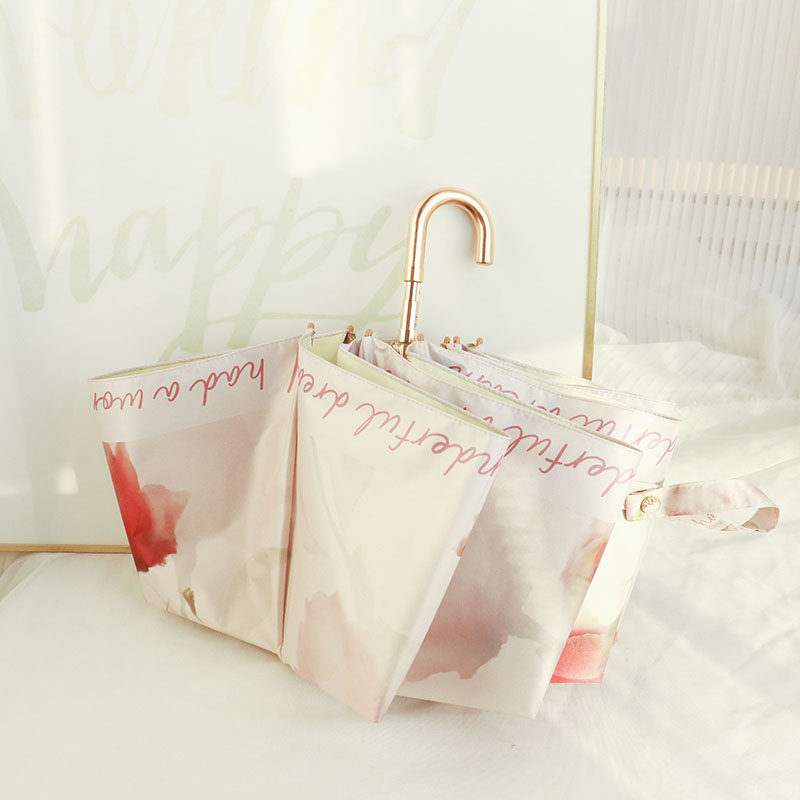 📚 柏纯希超好看弯钩折叠雨伞彩胶女晴雨两用防晒防紫外线遮阳太阳伞