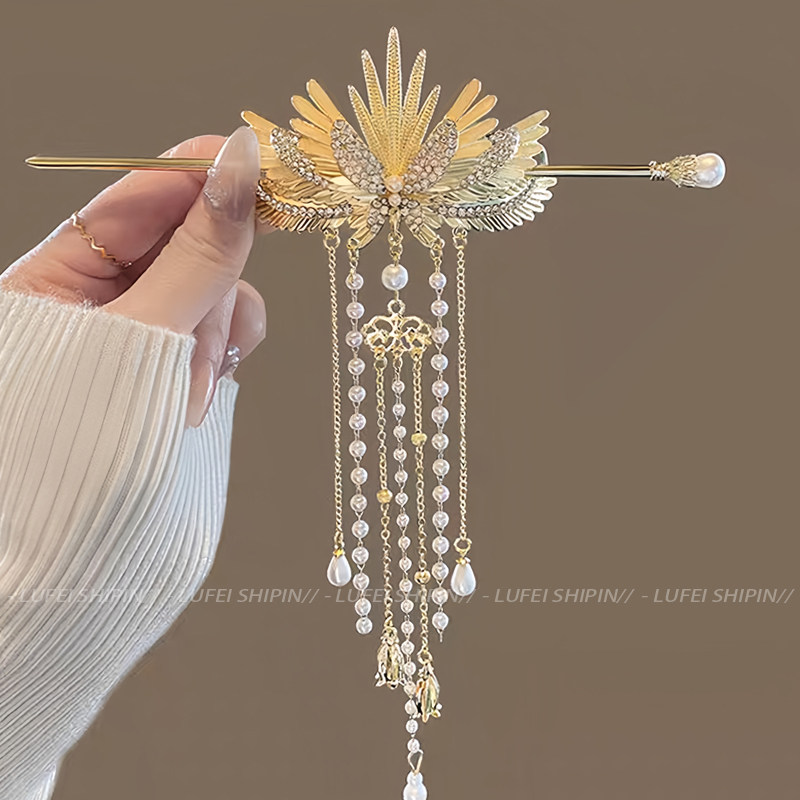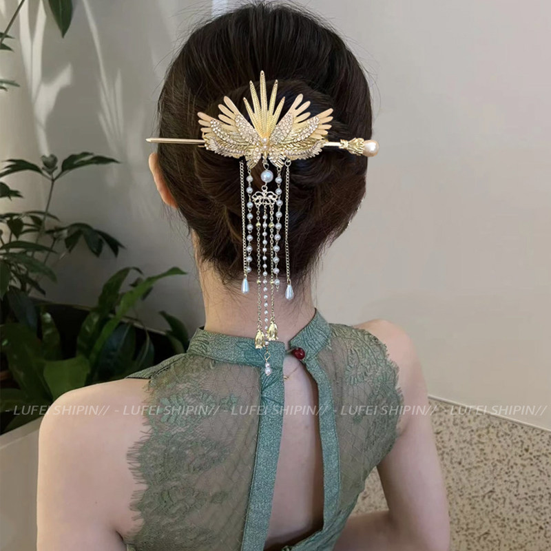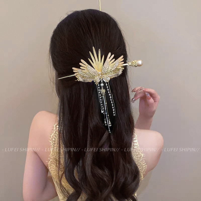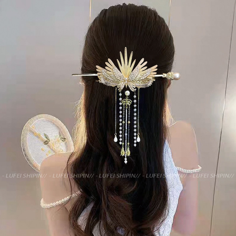 📚 超仙翅膀流苏发簪女高级感古风后脑勺盘发簪子新中式步摇发钗头饰