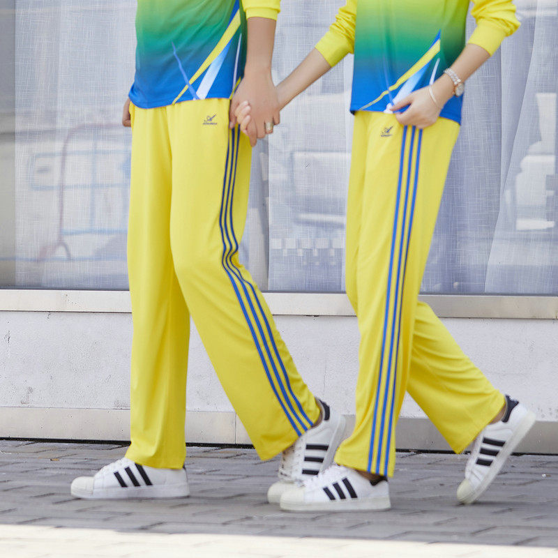 📚 梦之队运动裤长裤子春秋款男女士同款健身操三条杠夏季薄款白色