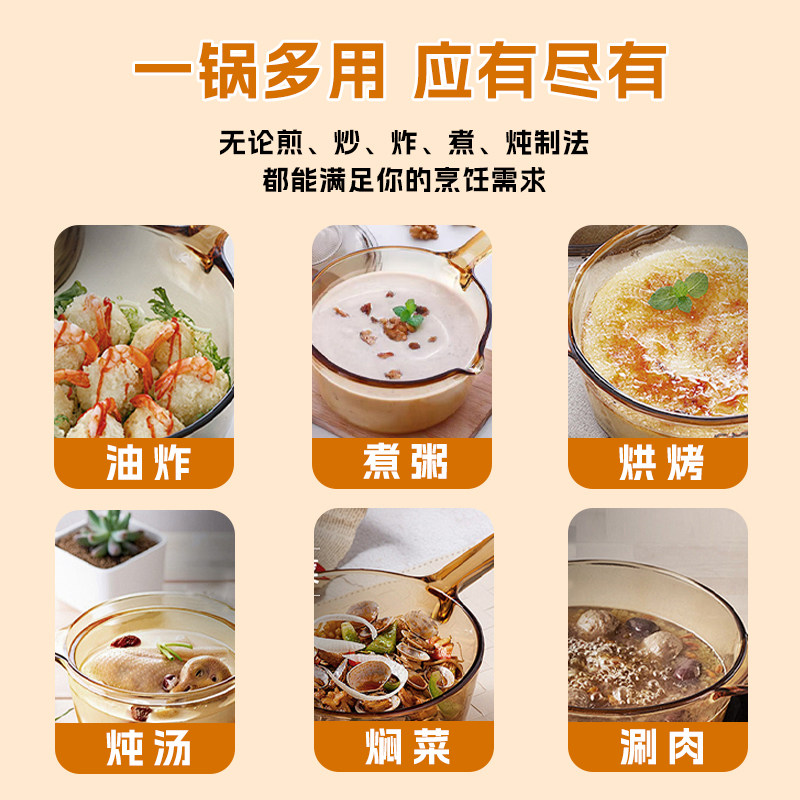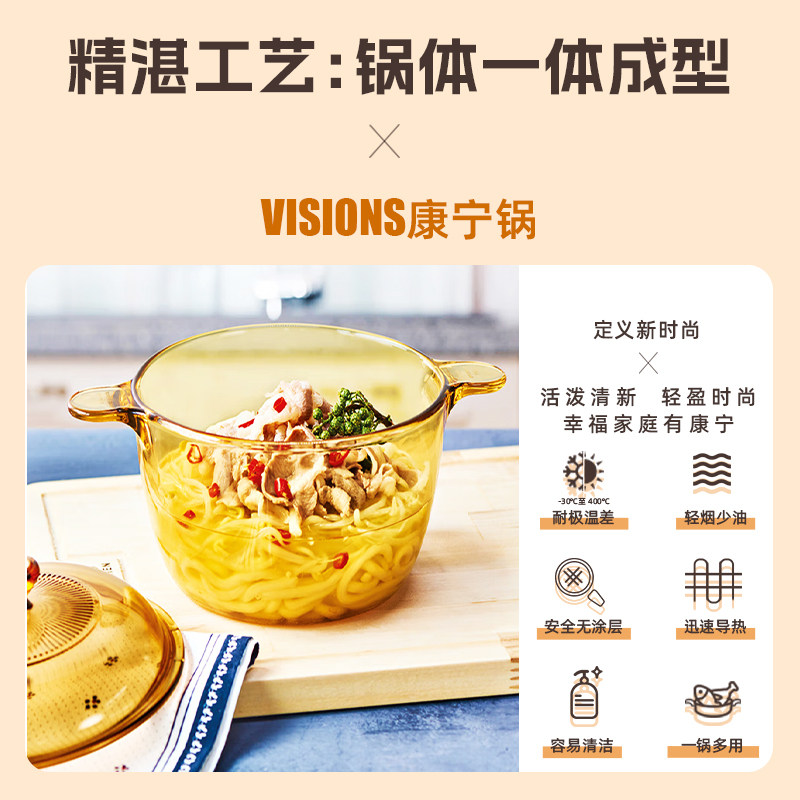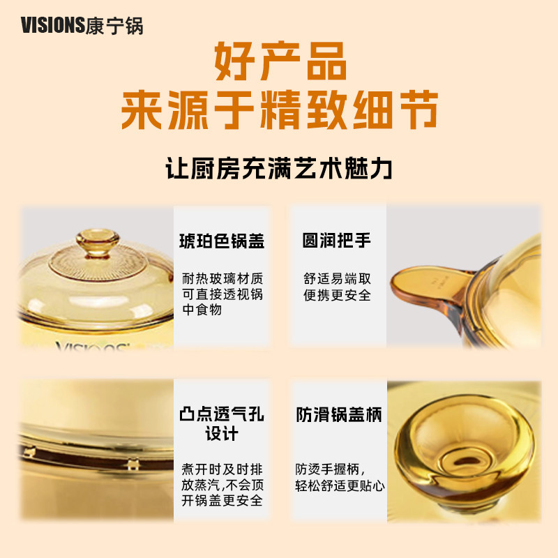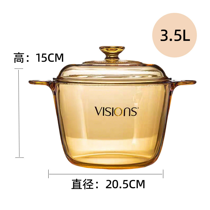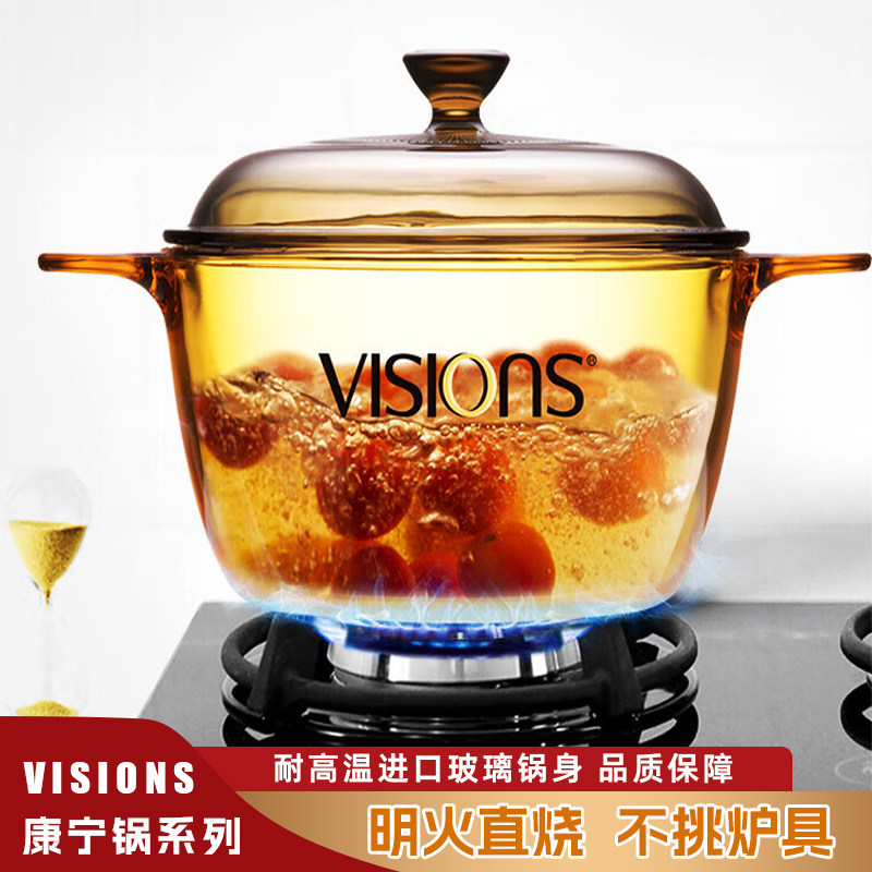 📚 VISIONS美国正品康宁晶彩玻璃明火直烧耐高温琥珀锅汤锅煮粥炖锅