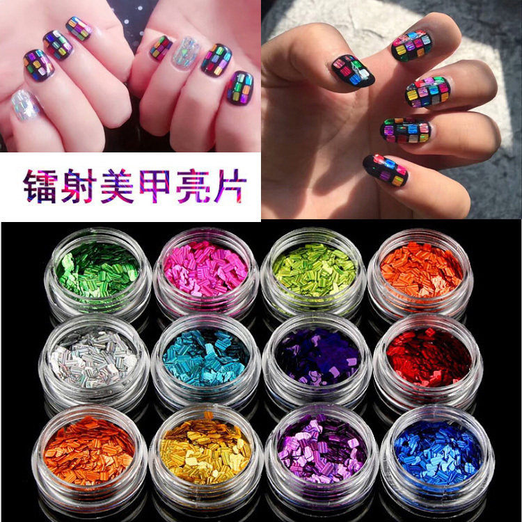 📚 镭射美甲亮片光疗指甲油胶饰品贴片正方长方形激光条纹眼妆亮片