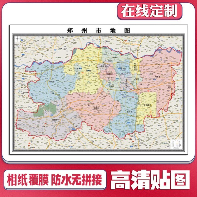 📚 新款郑州市地图定制贴挂超大巨幅壁画行政区划图办公室装饰画海报