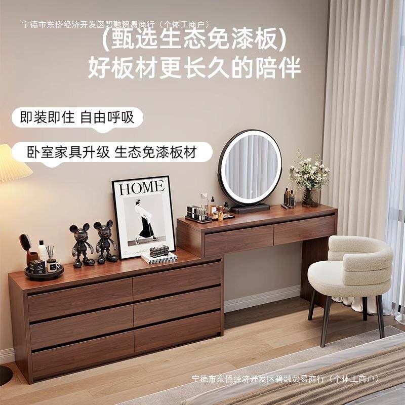 📚 2024新款原木风梳妆台现代简约卧室斗柜一体化妆桌床头柜小型奶油