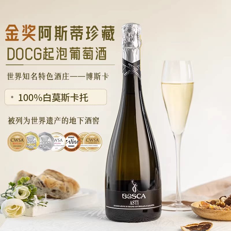 📚 【自营】起泡酒大赛金奖意大利莫斯卡托阿斯蒂DOCG气泡酒赠香槟杯
